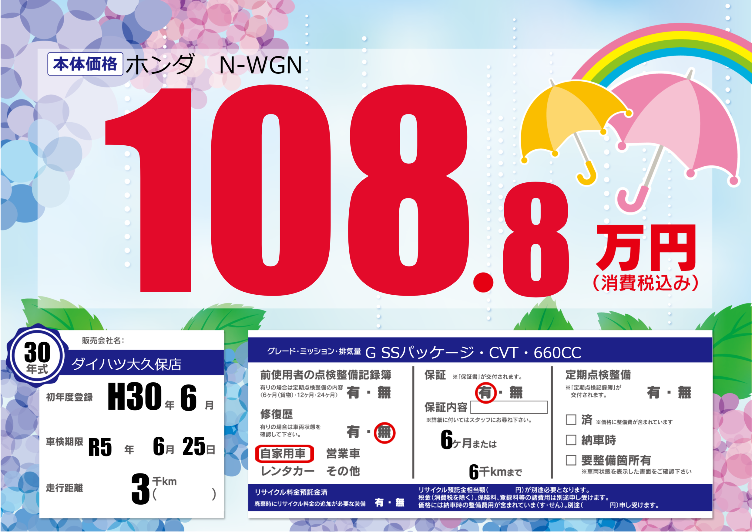 | 車名 | ホンダ N-WGN | グレード ミッション 排気量 |
