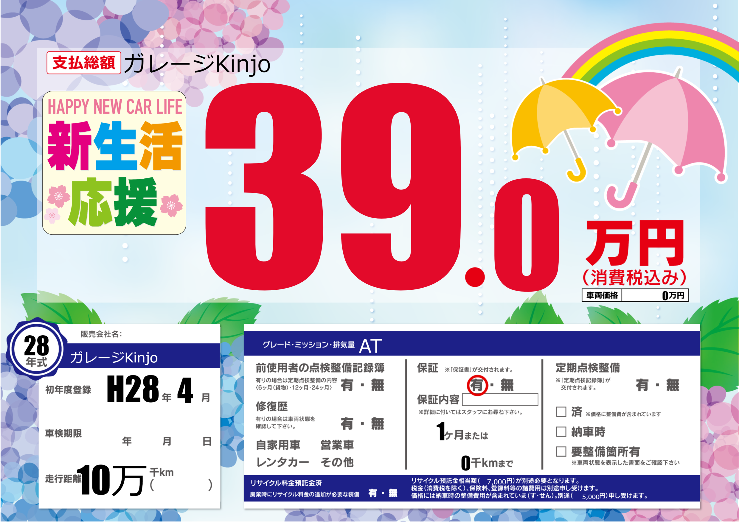 保証付き 保証内容(---) 1ヶ月または(0)千kmまで |