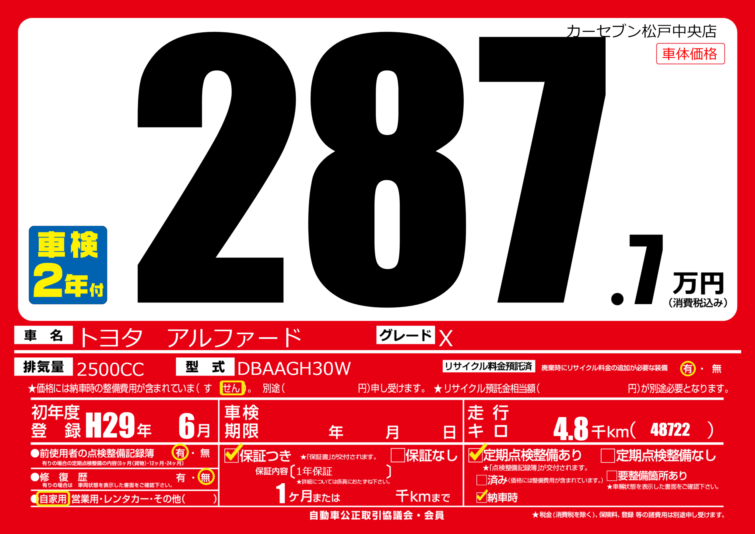 | 初年度登録 | H29年6月 | ||