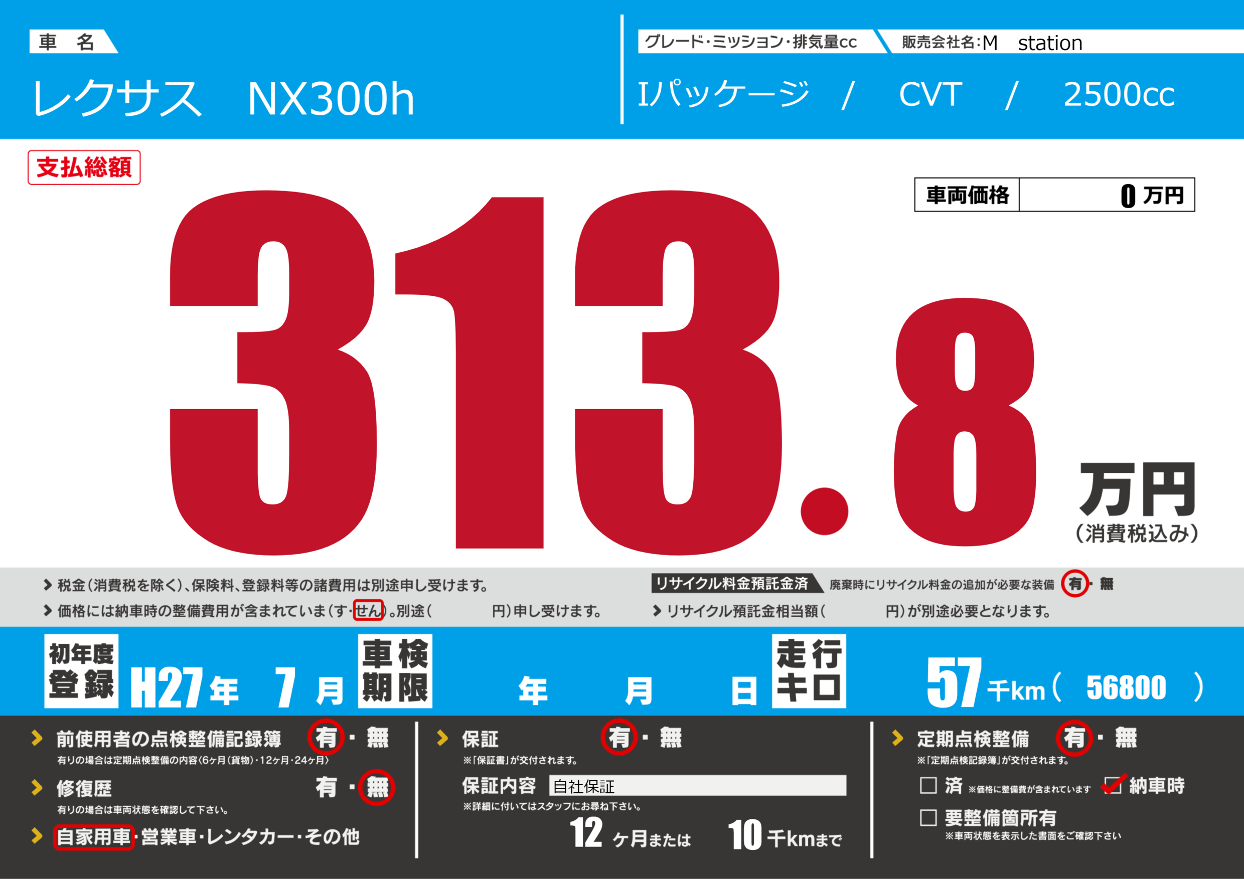 | 車検制限 | - 年 - 月 - 日 | ||