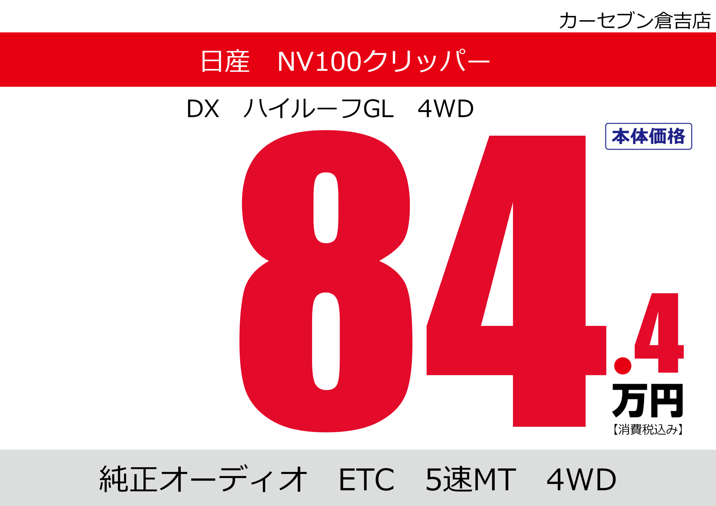 | 車名 | 日産 NV100クリッパー | グレード ミッション 排気量 |