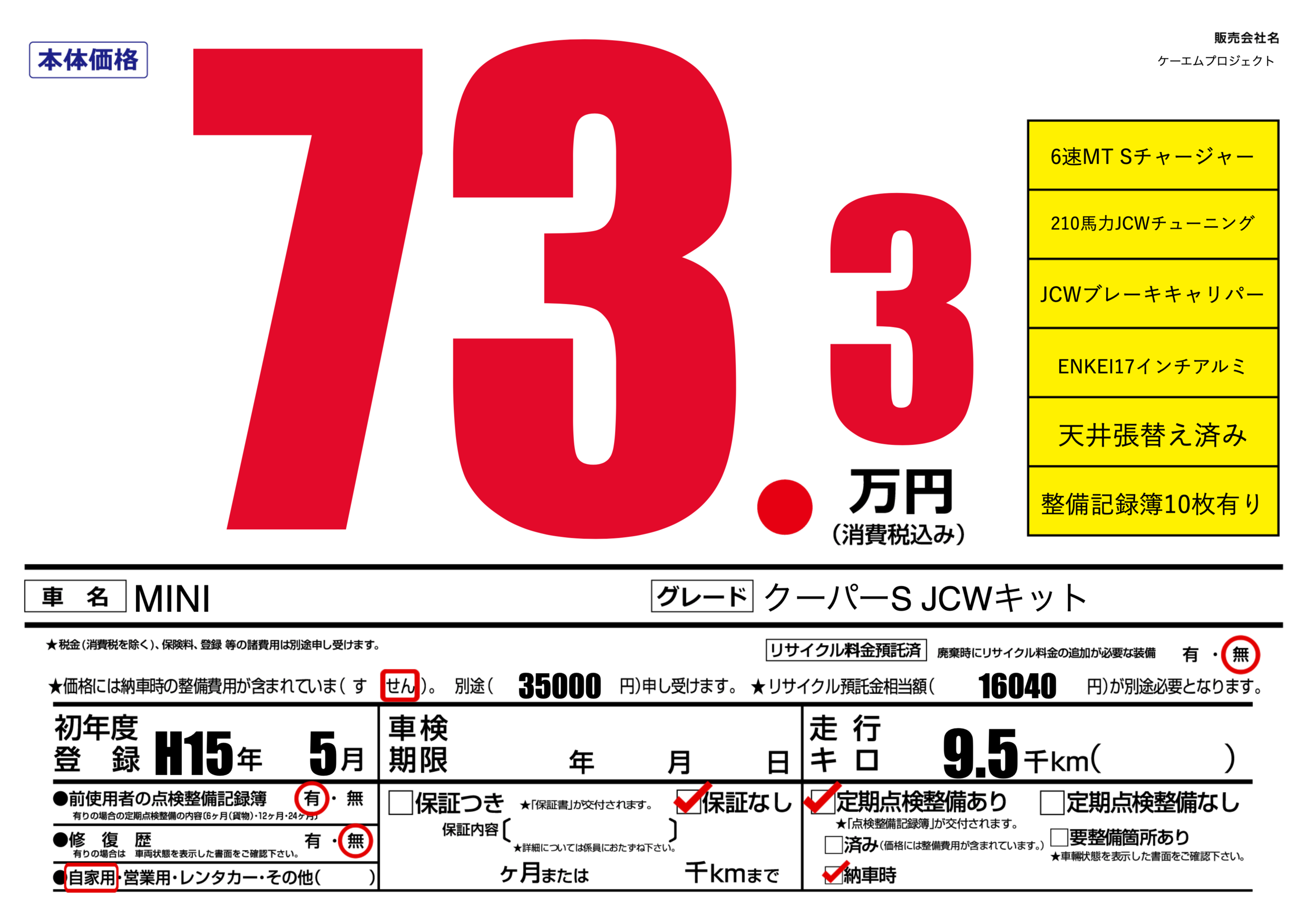 | 定期点検整備 | 定期点検整備あり 納車時あり | ||