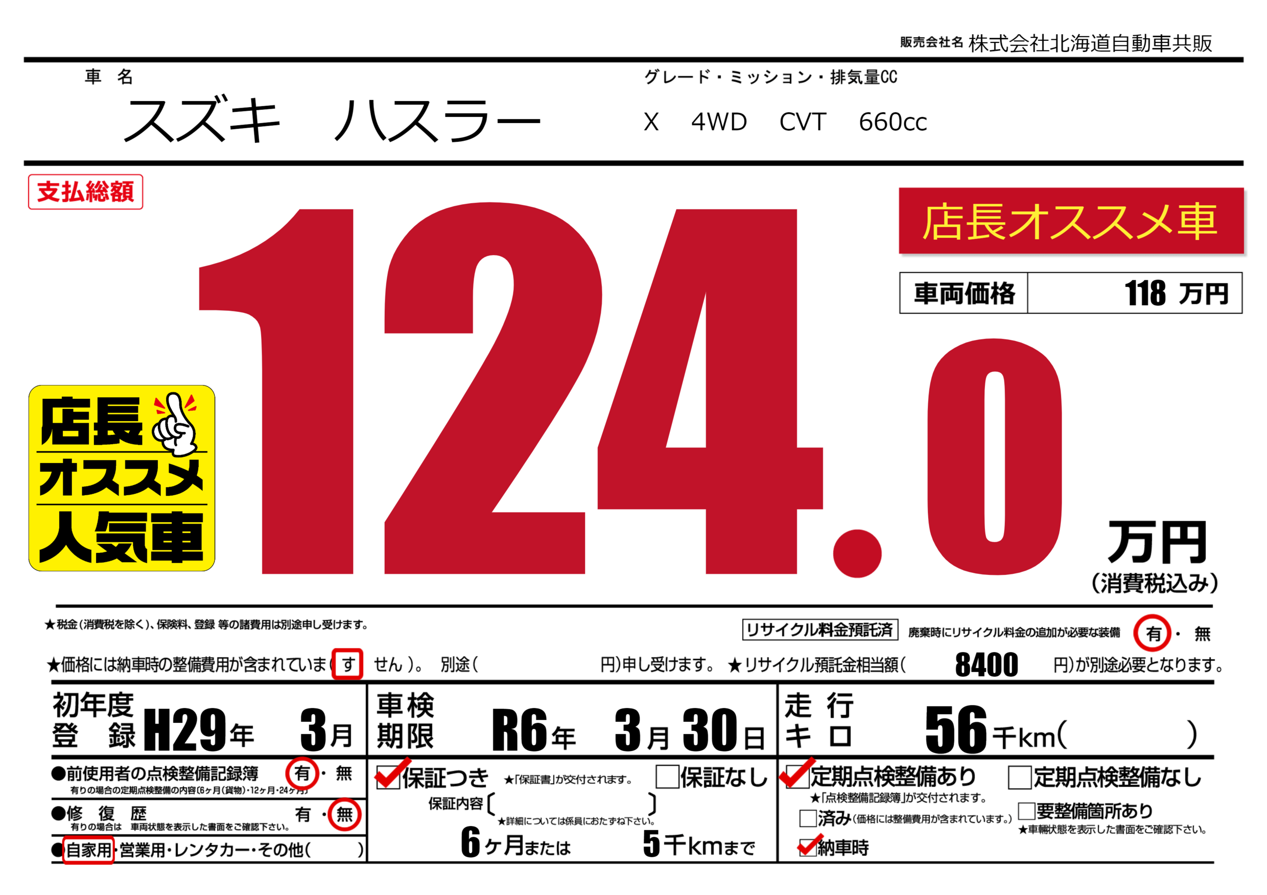 | 車検制限 | R6年 3月 30日 | ||