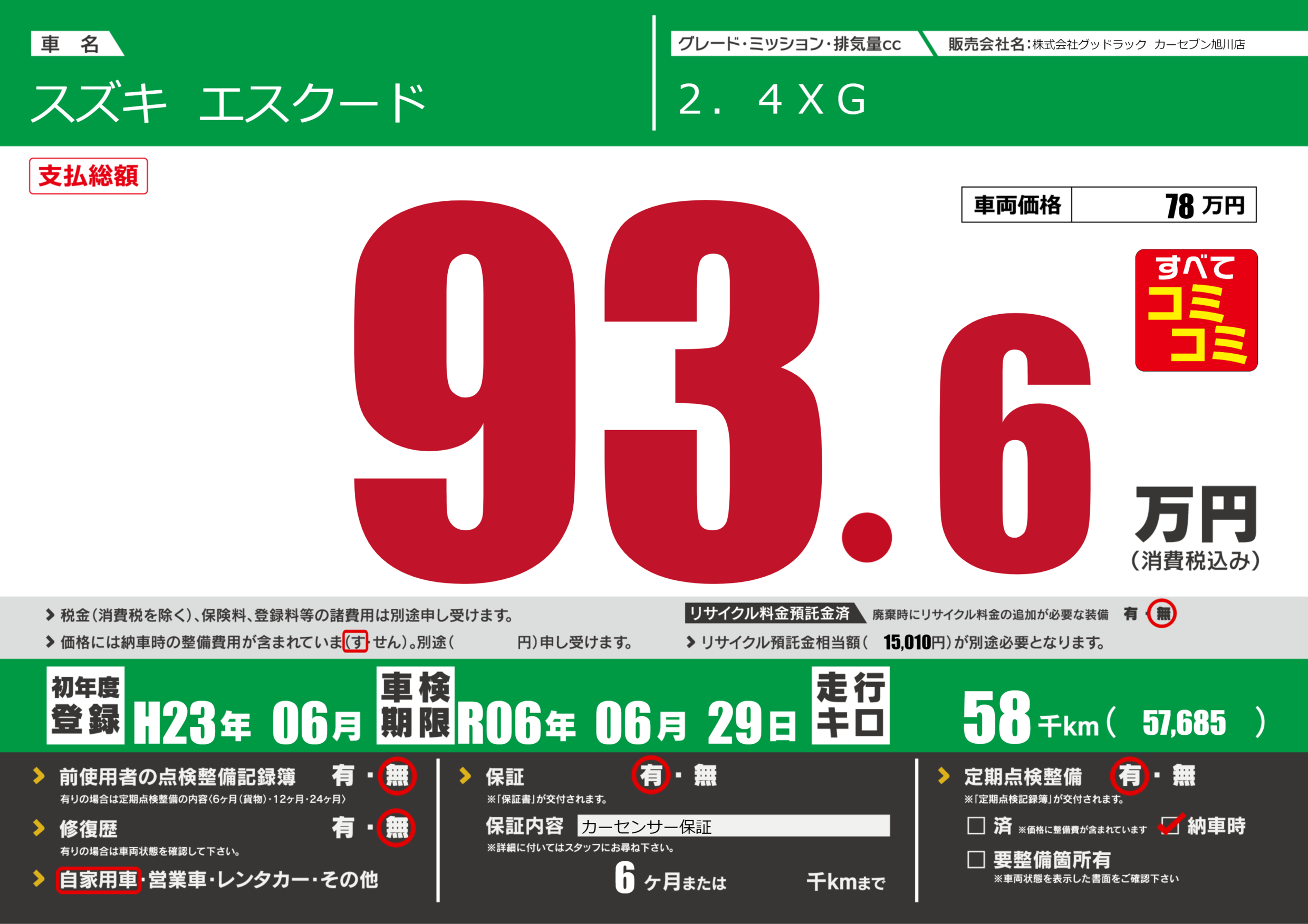 あり | 車検制限 | R06年06月29月 |