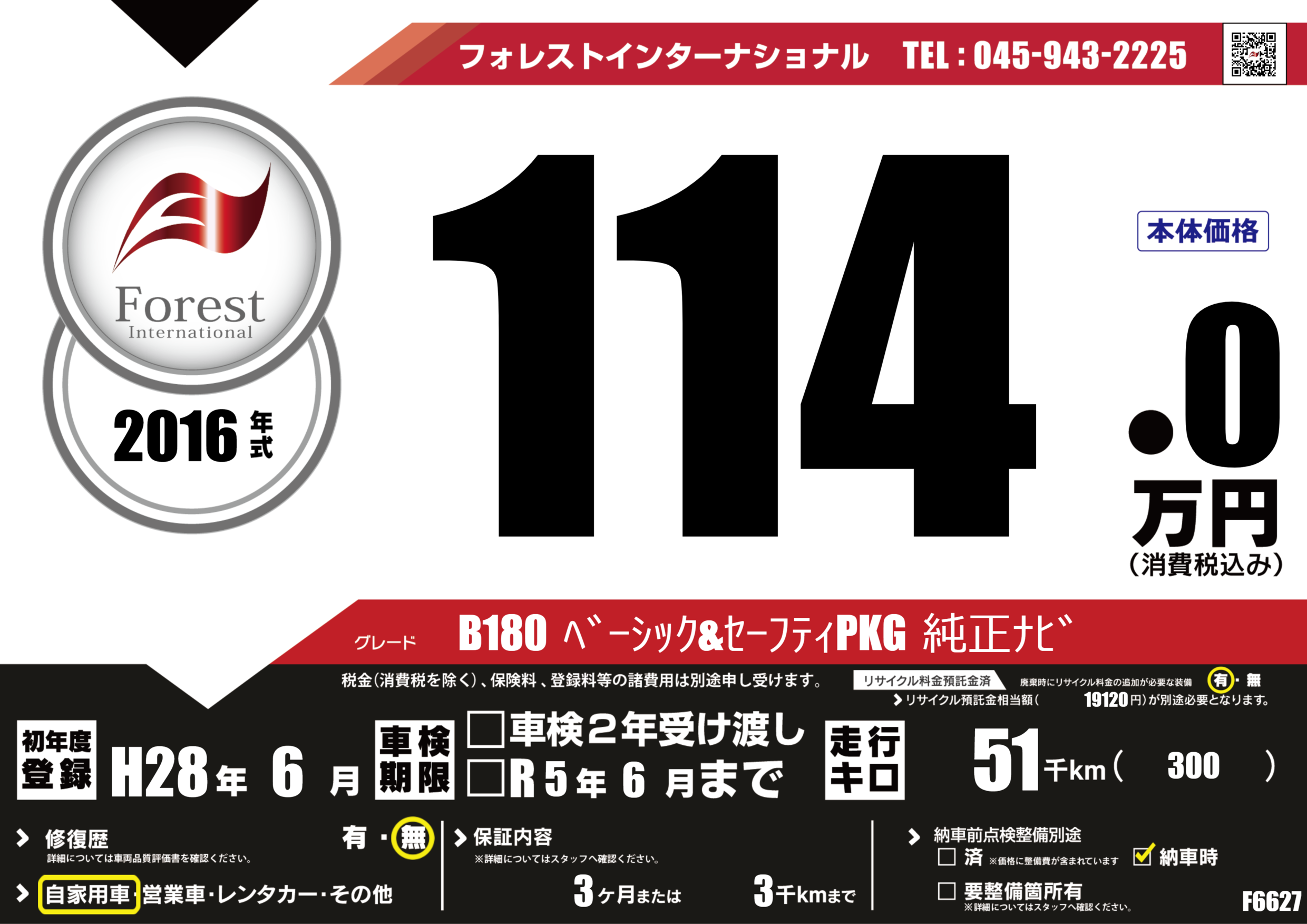 B180 ベーシック&セーフティPKG 純正ナビ |