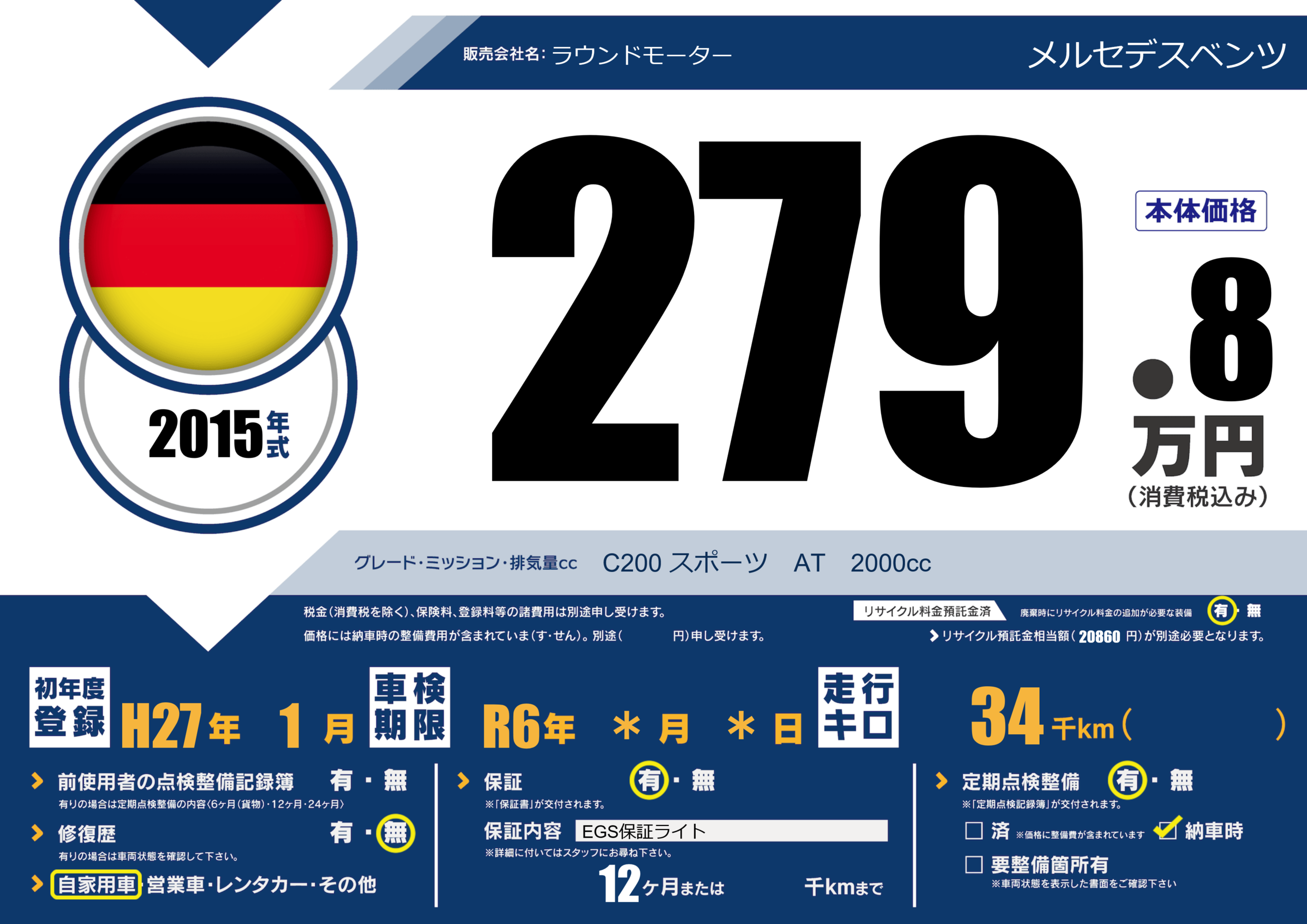 保証付き 保証内容(EGS保証ライト) 12ヶ月または()千kmまで |