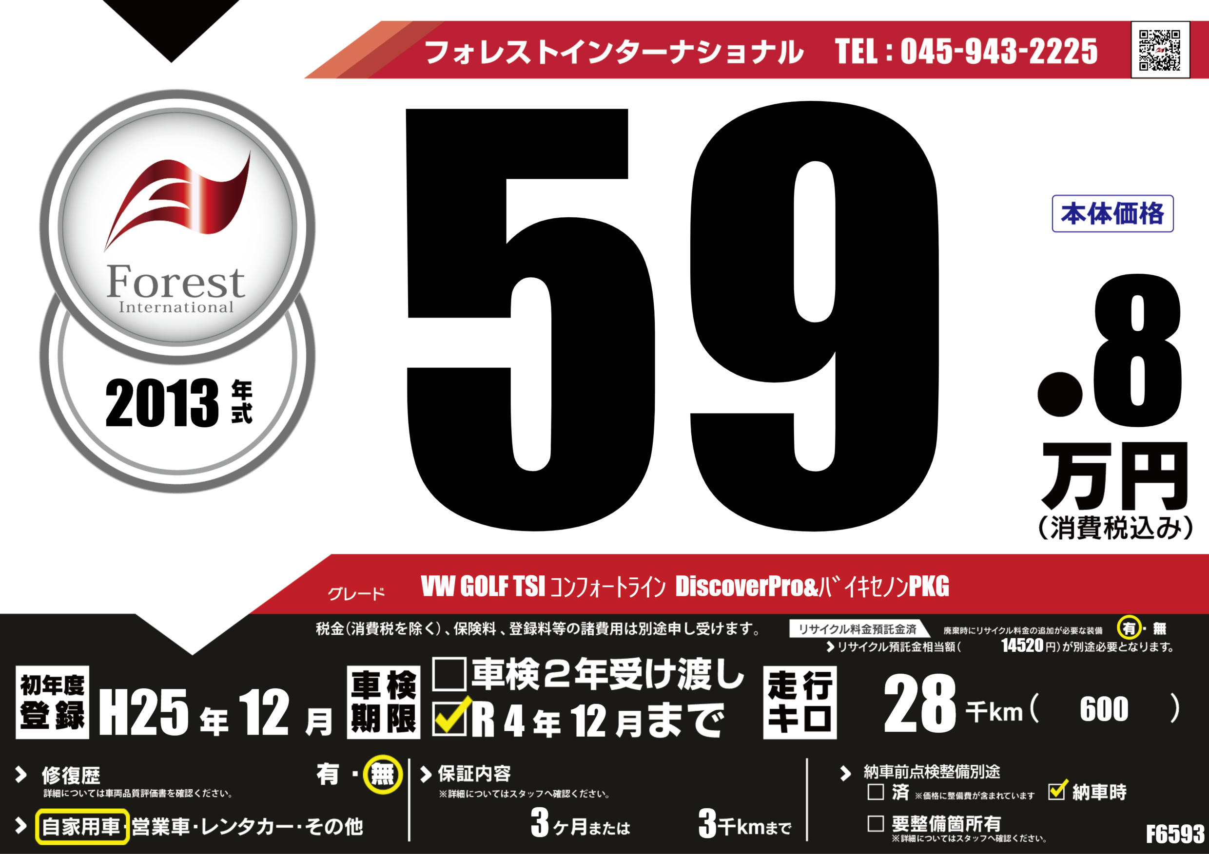 | 走行キロ | 2.8万km | 初年度登録 | H25年12月 |