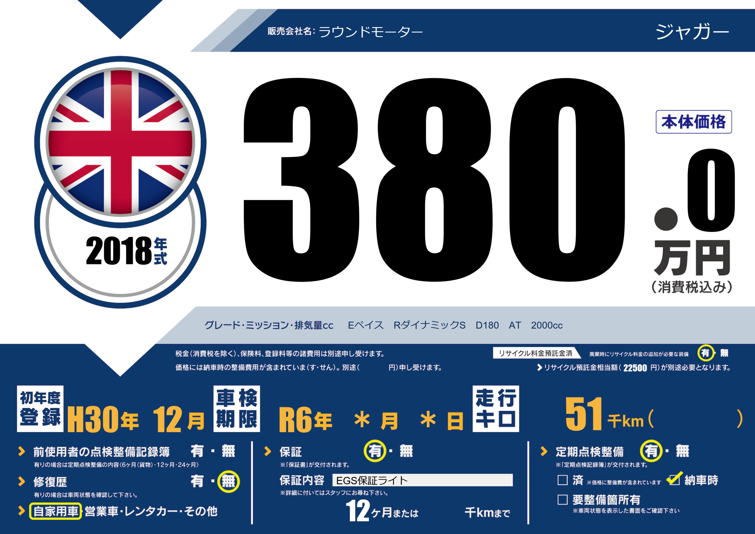 保証付き 保証内容(EGS保証ライト) 12ヶ月または()千kmまで |