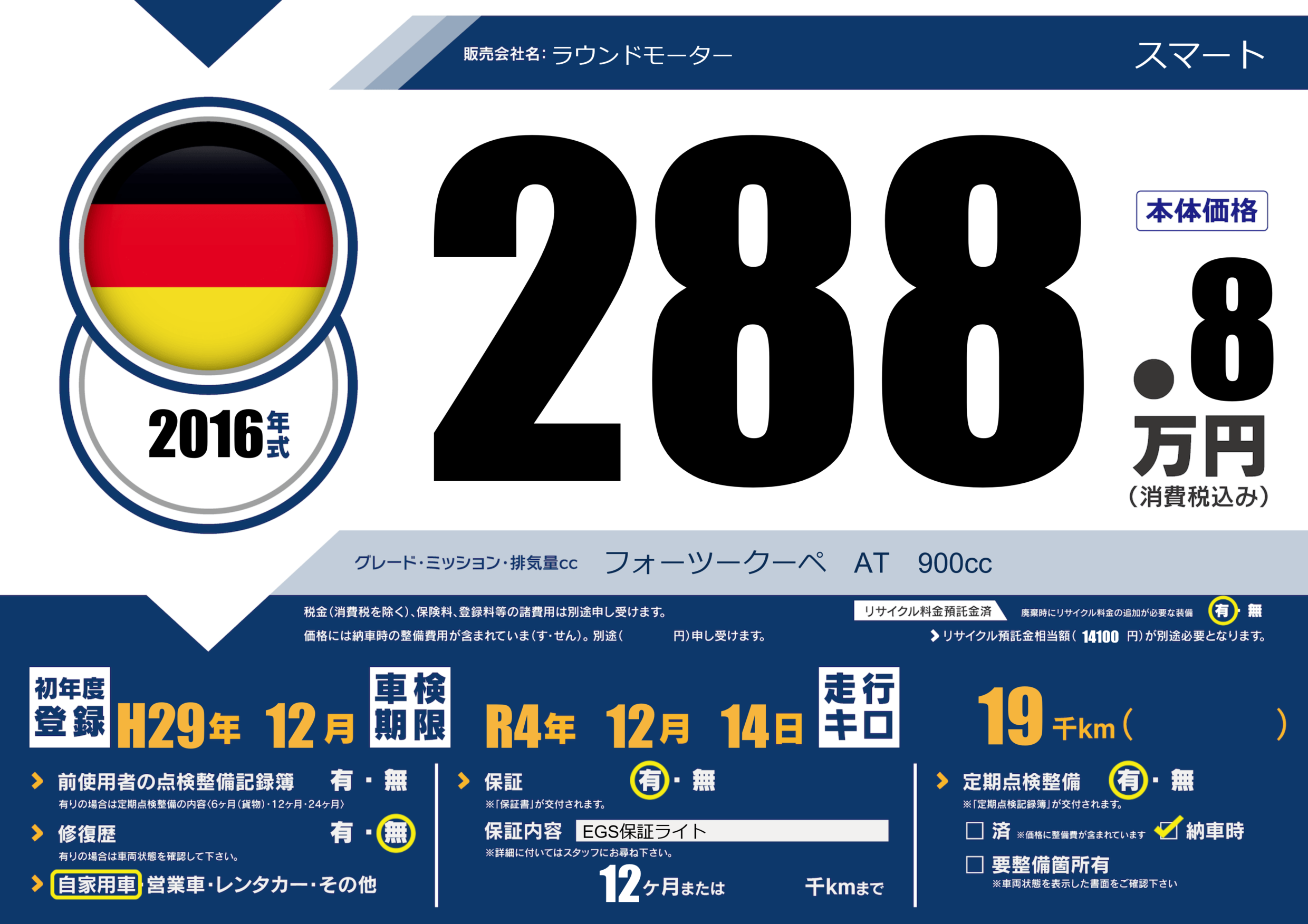 | 定期点検整備 | 定期点検整備あり 納車時あり | ||