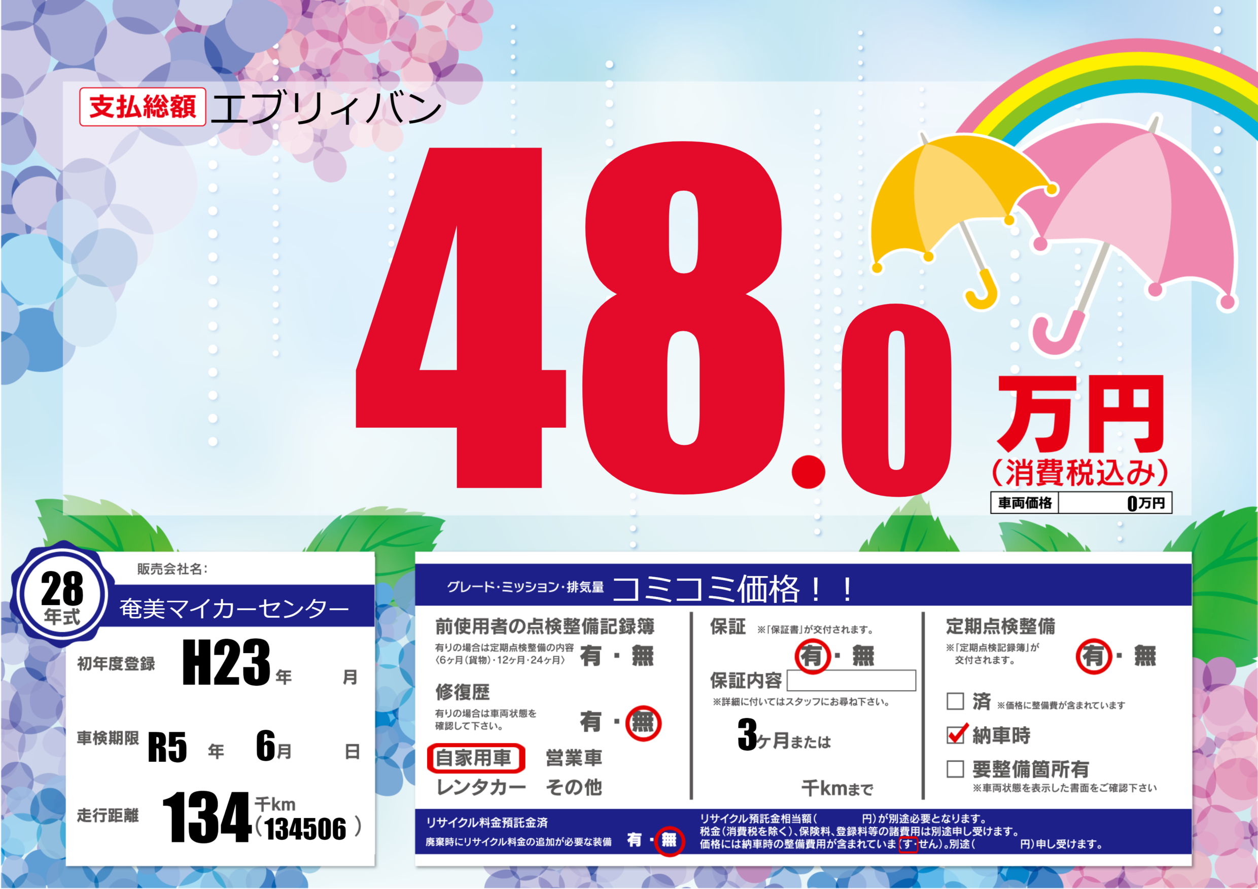 車検制限 | R5年6月---月 |