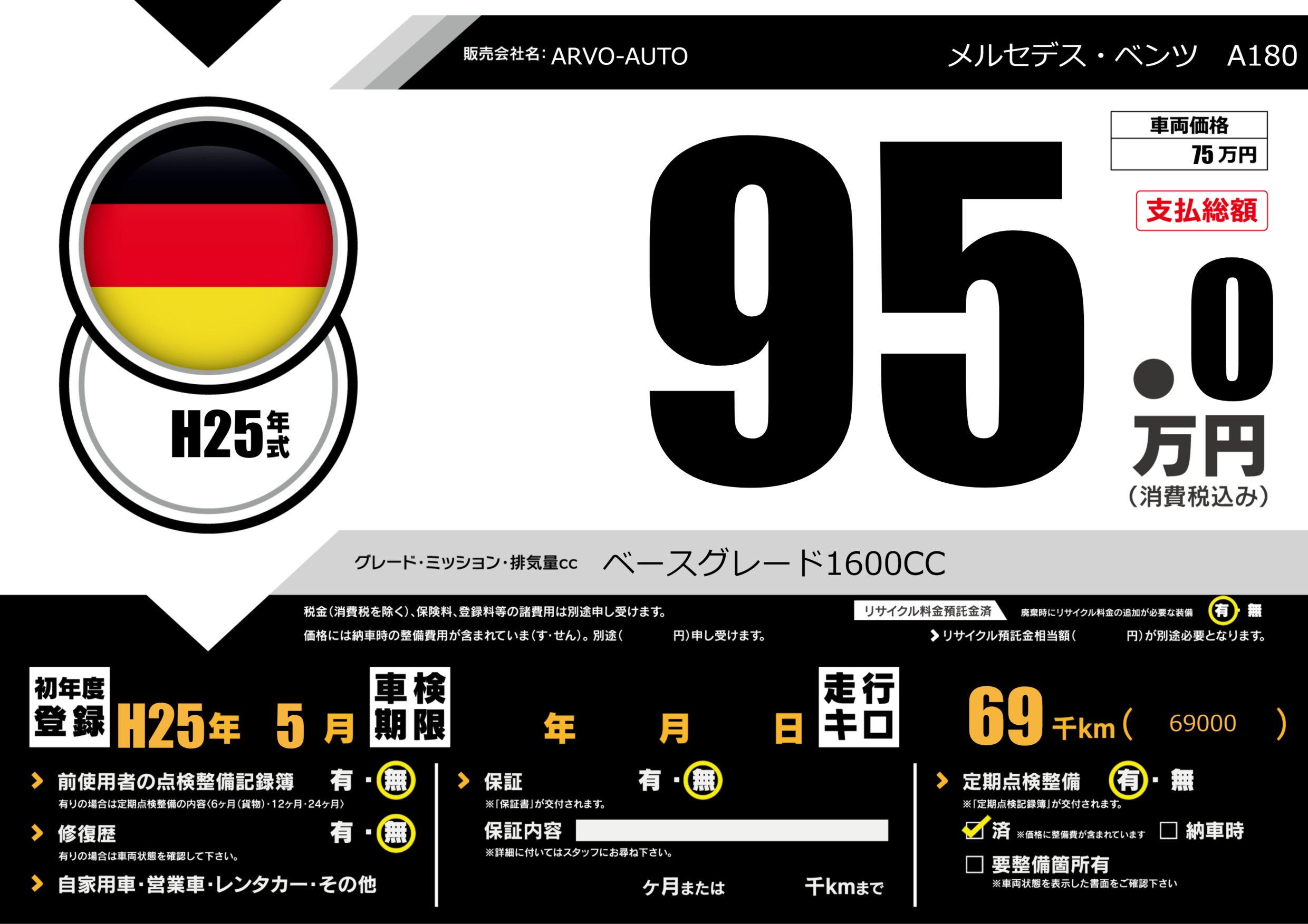 | 定期点検整備 | 定期点検整備あり 定期点検整備済み | ||