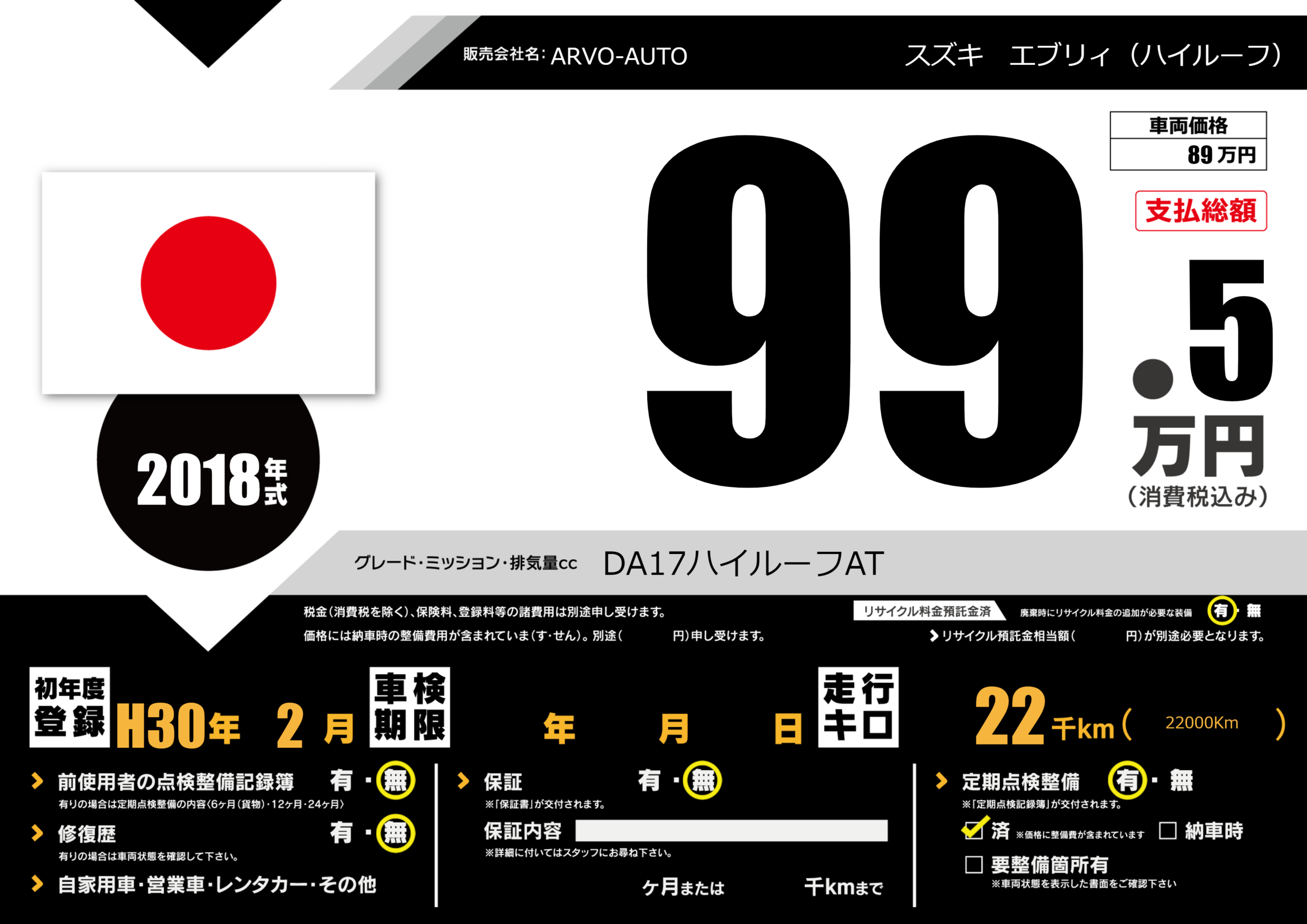 | 定期点検整備 | 定期点検整備あり 定期点検整備済み | ||