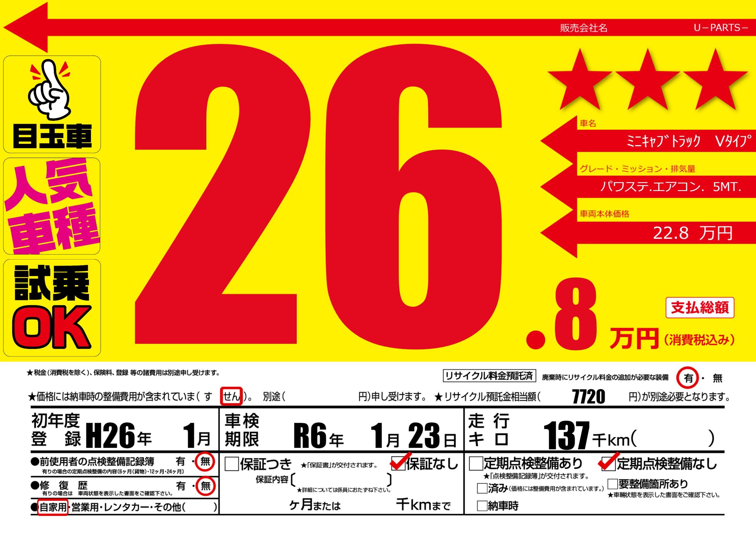 なし | 車検制限 | R6年1月23月 |