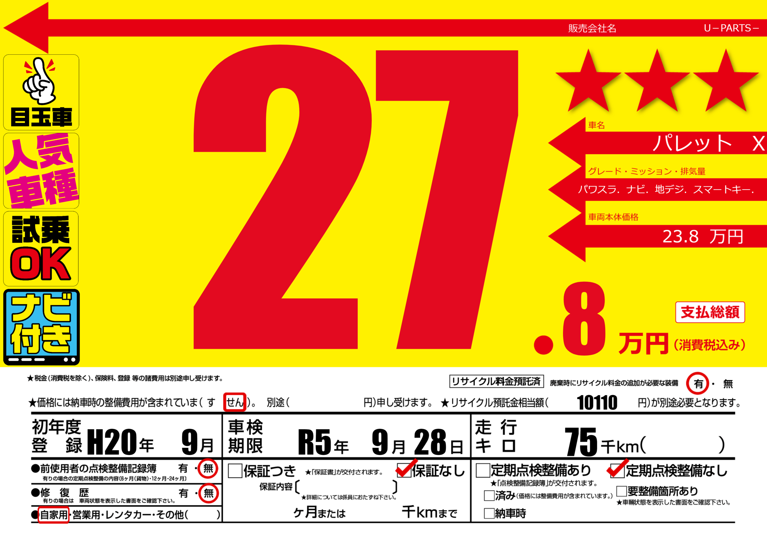 | 車名 | パレット X | グレード ミッション 排気量 |