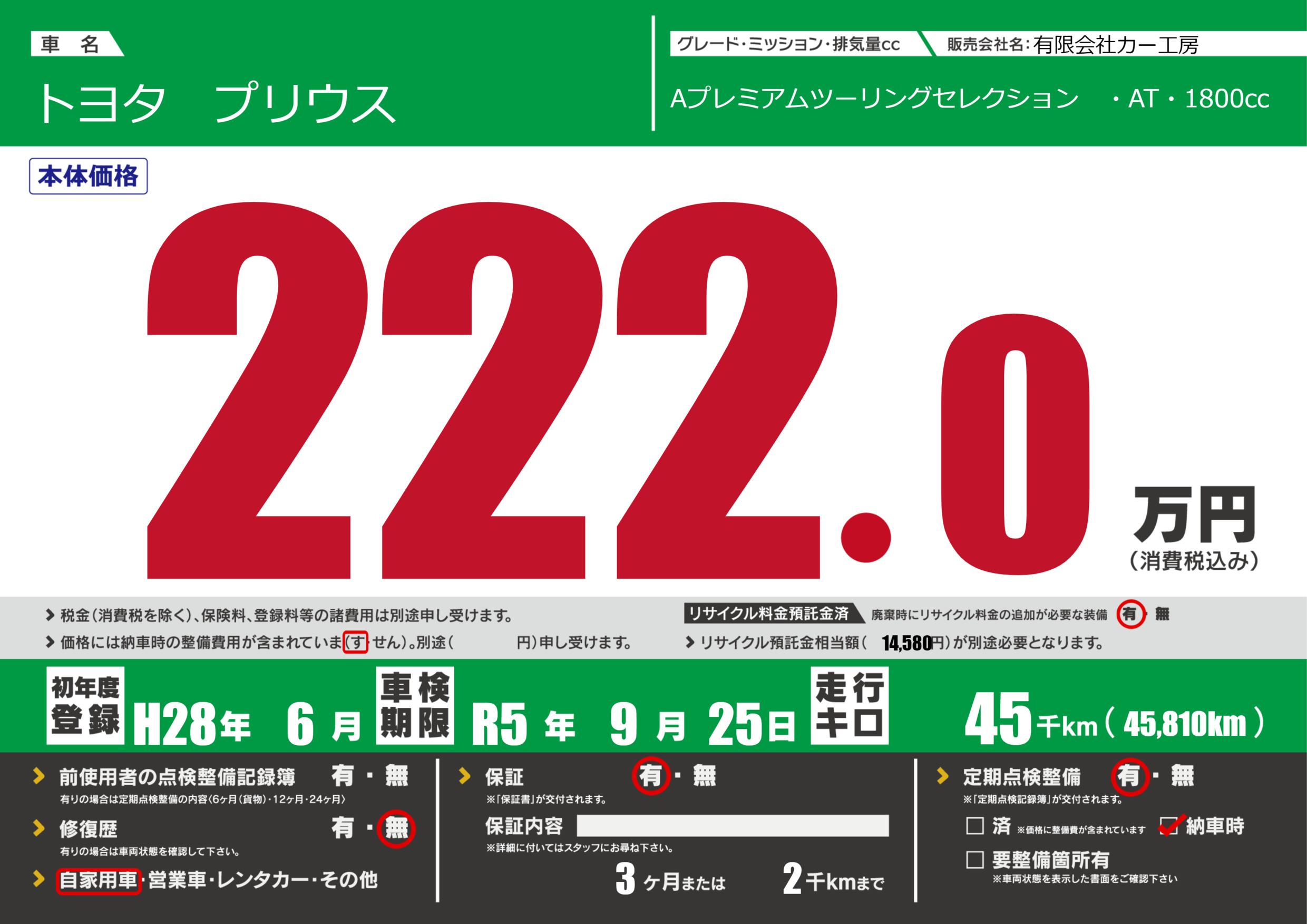 | 車検制限 | R5年 9月 25日 | ||