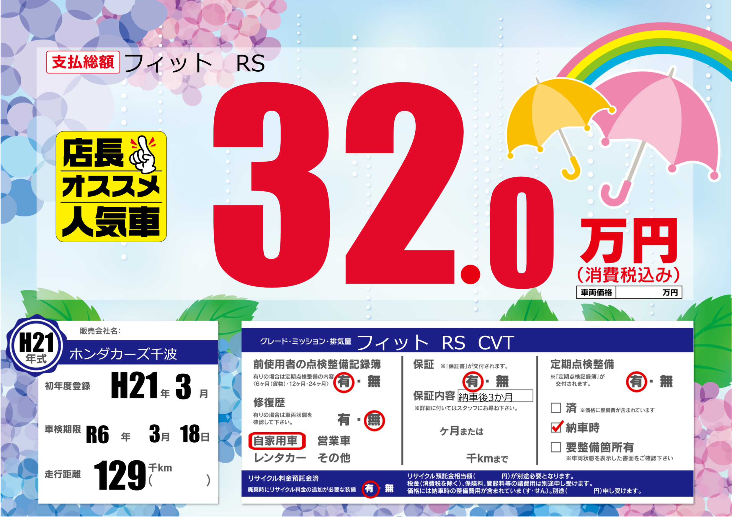 | 車名 | フィット RS | グレード ミッション 排気量 |