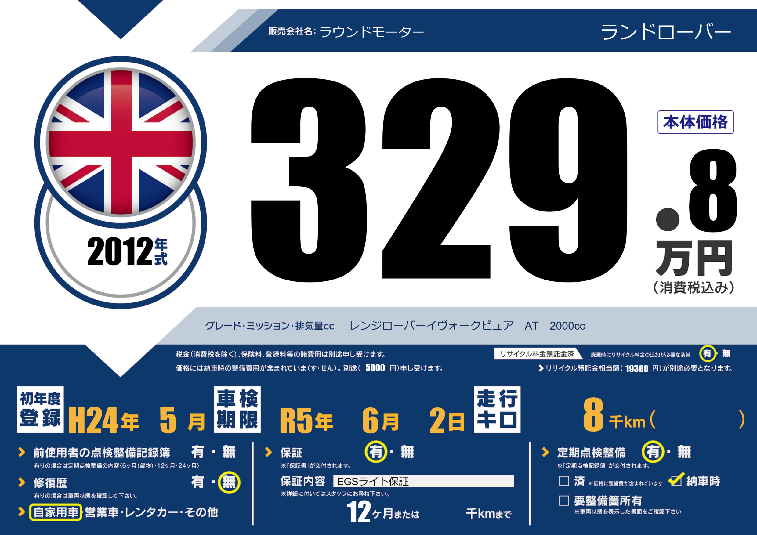 保証付き 保証内容(EGSライト保証) 12ヶ月または千km |