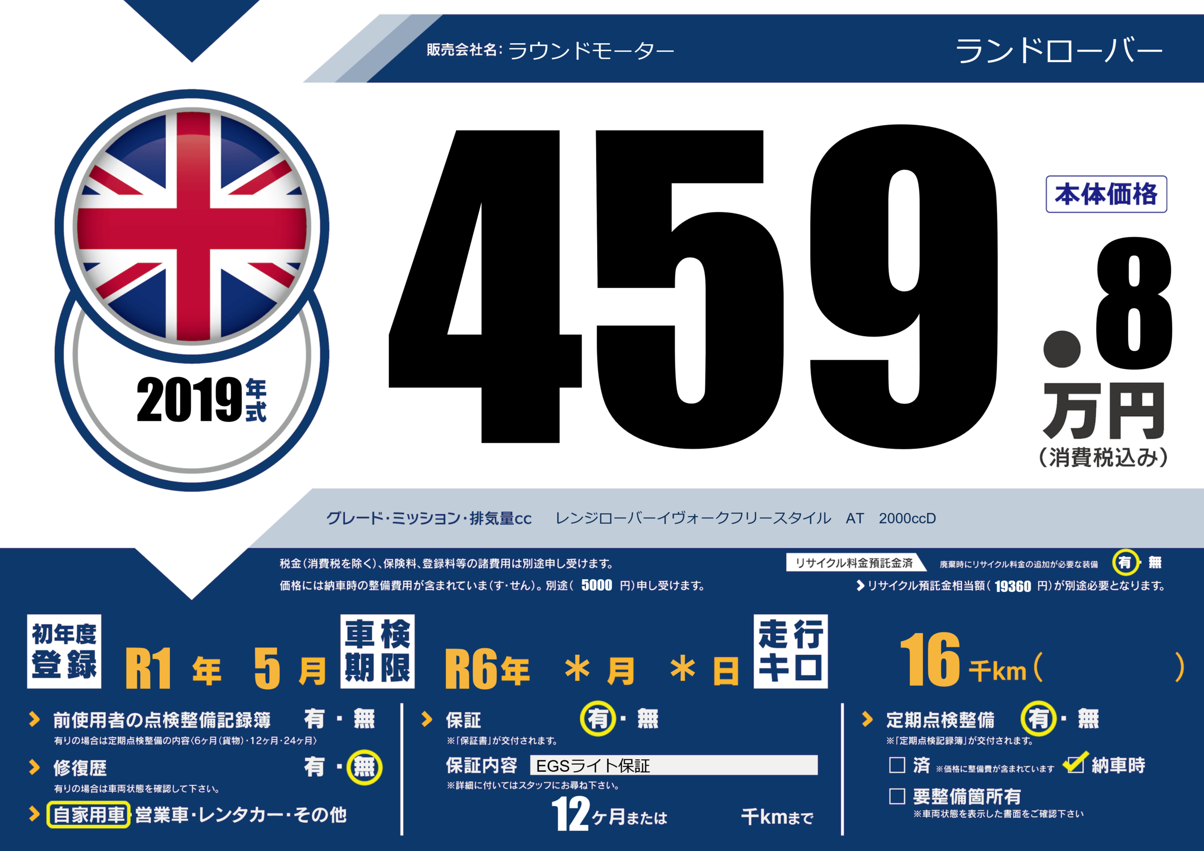 | 車名 | ランドローバー | グレード ミッション 排気量 |