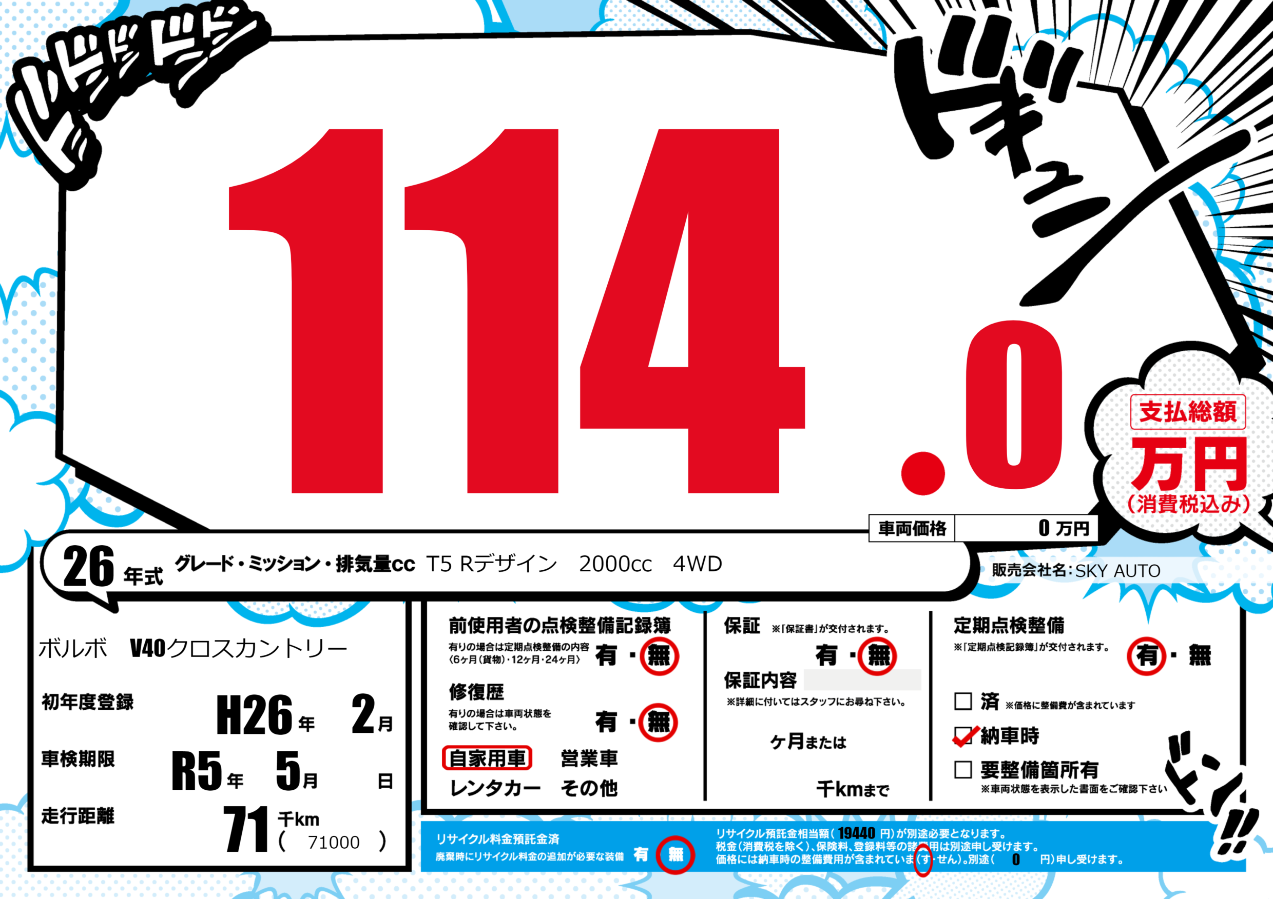 | 走行キロ | 7.1万km | 初年度登録 | H26年2月 |