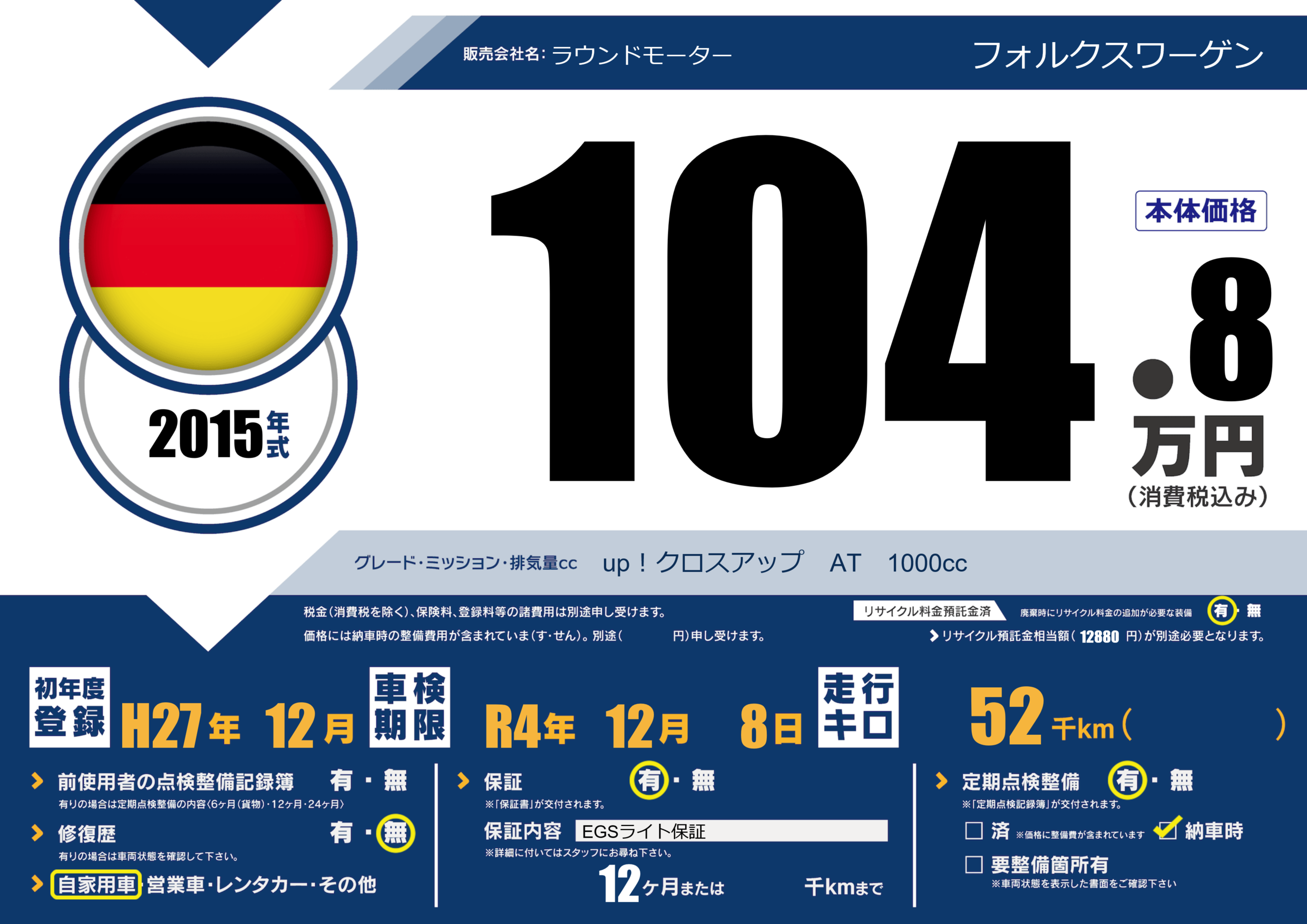 保証付き 保証内容(EGSライト保証) 12ヶ月または千km |