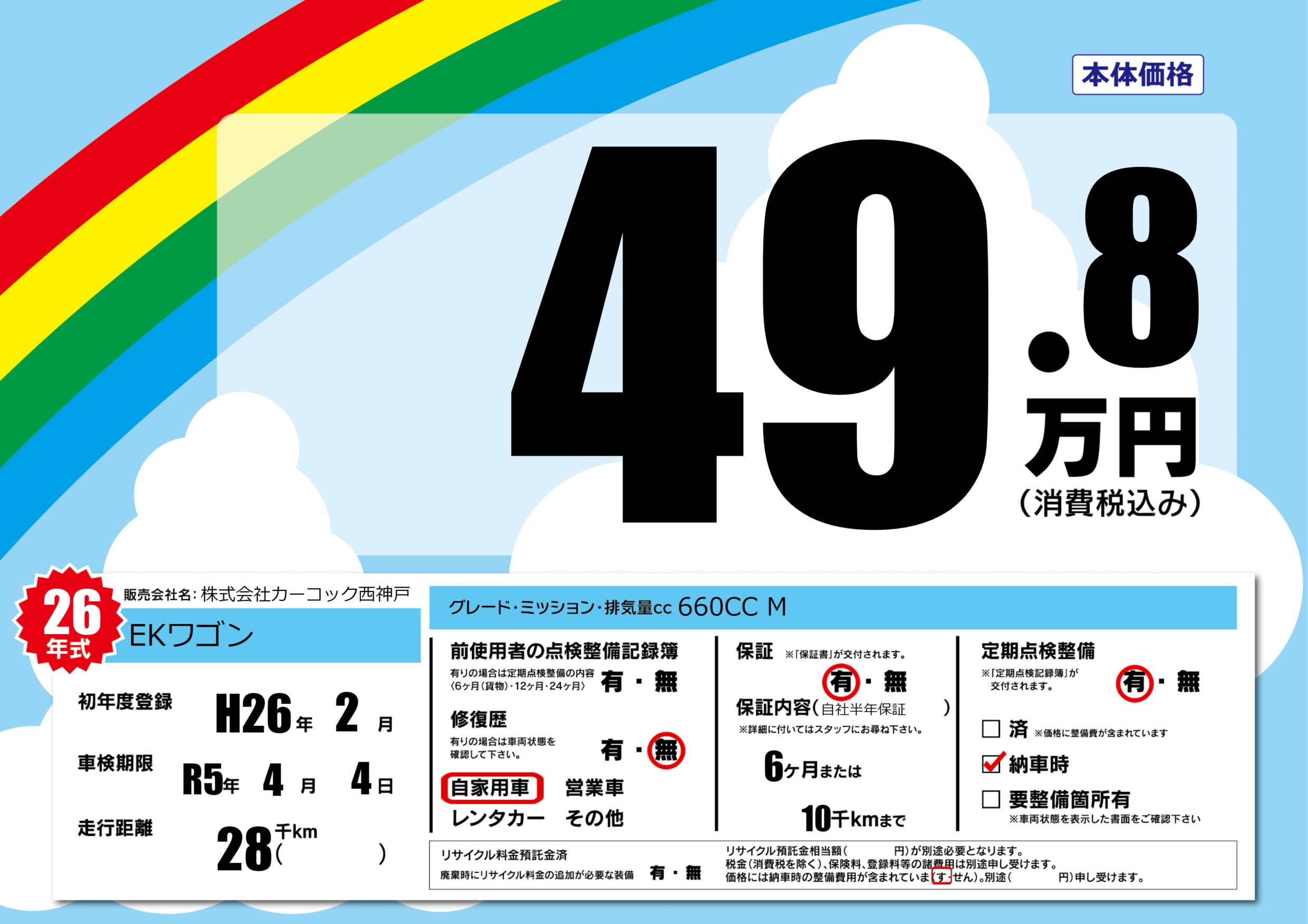 | 車名 | EKワゴン | グレード ミッション 排気量 |