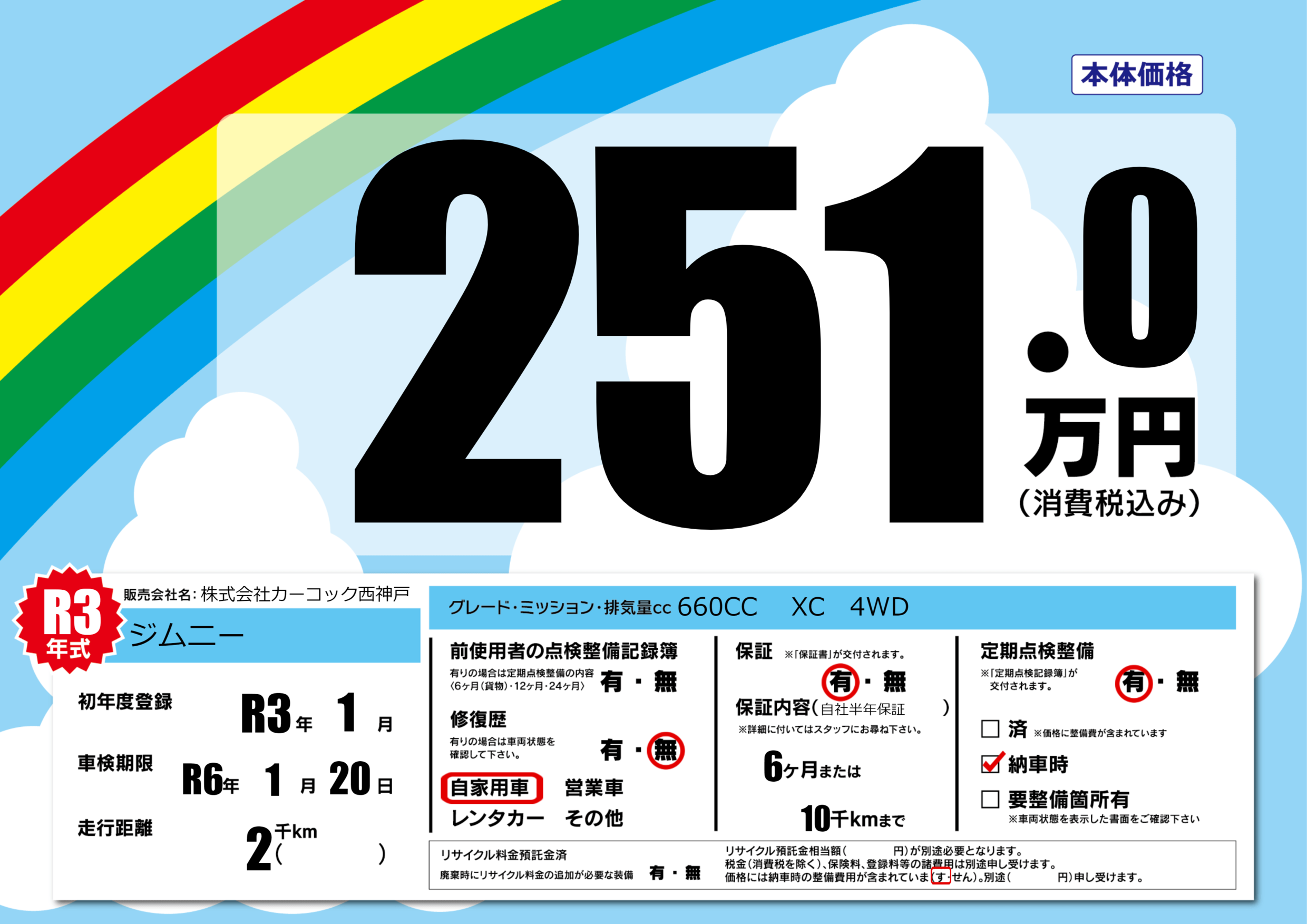 | 車名 | ジムニー | グレード ミッション 排気量 |