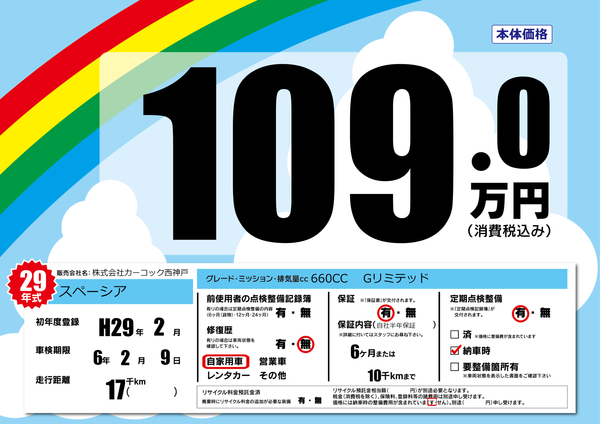 | 走行キロ | 1.7万km | 初年度登録 | H29年2月 |