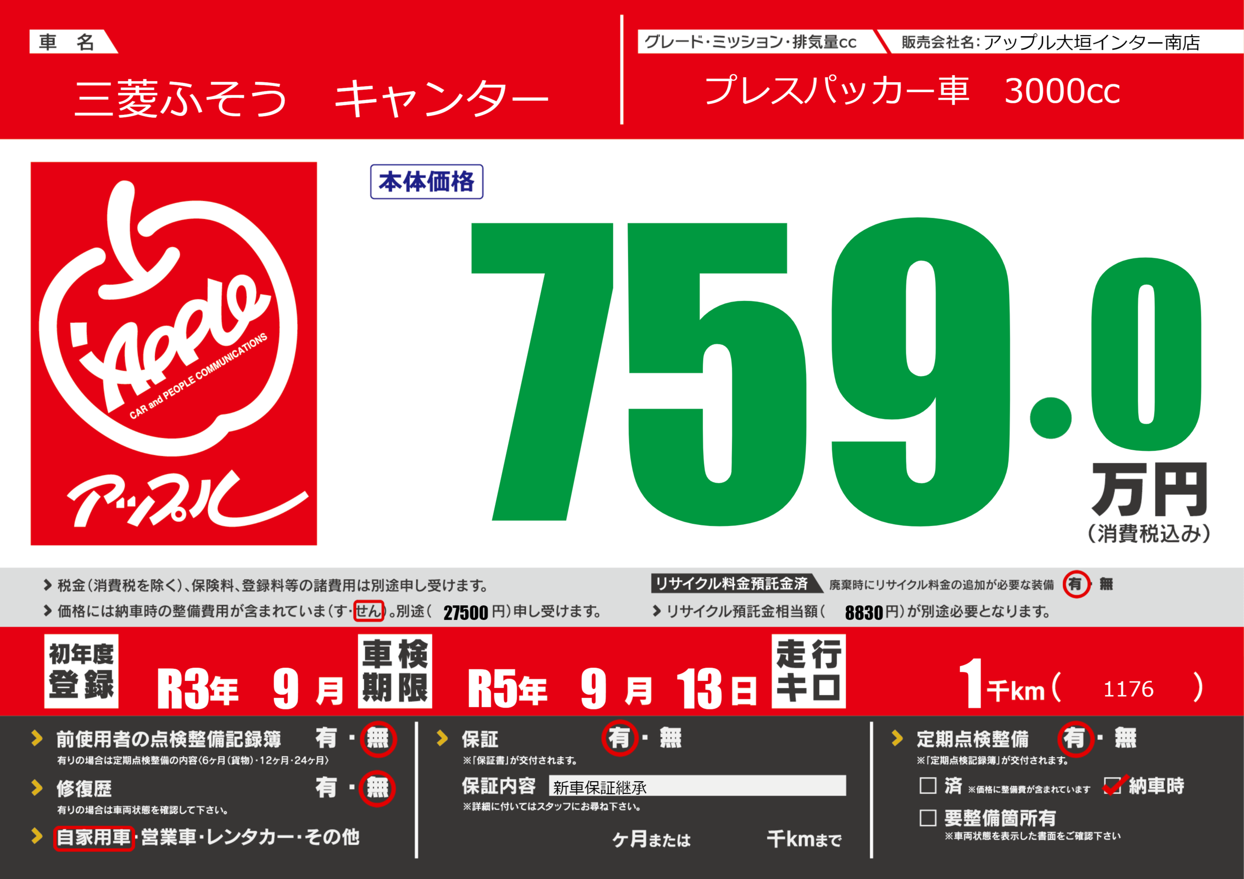 | 定期点検整備 | 定期点検整備あり 納車時あり | ||