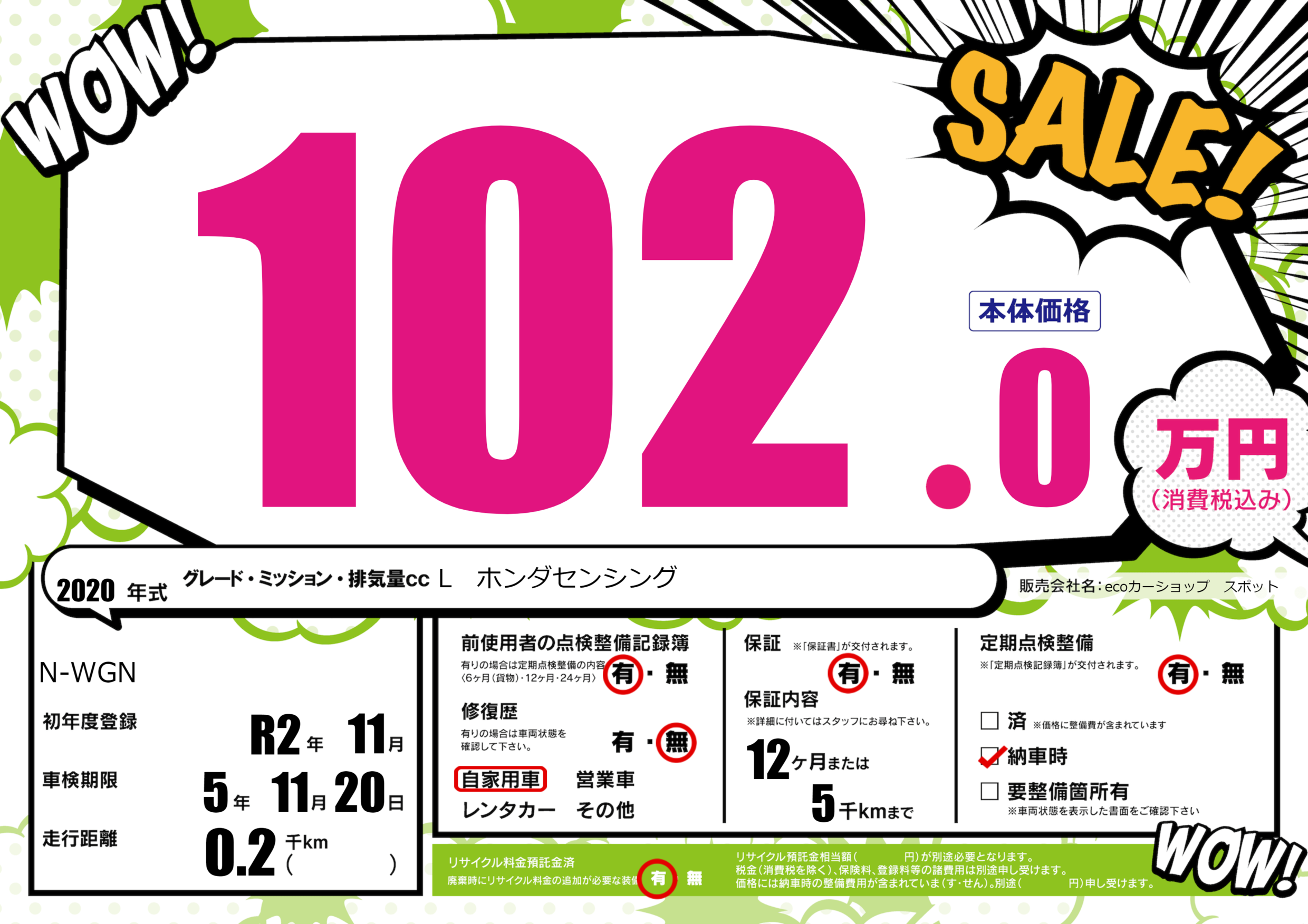 | 車検制限 | 5年 11月 20日 | ||