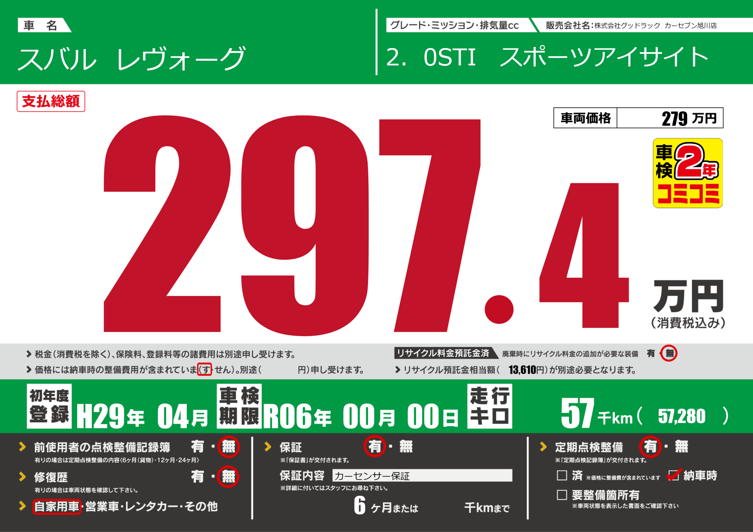 | 車検制限 | R06年 00月 00日 | ||