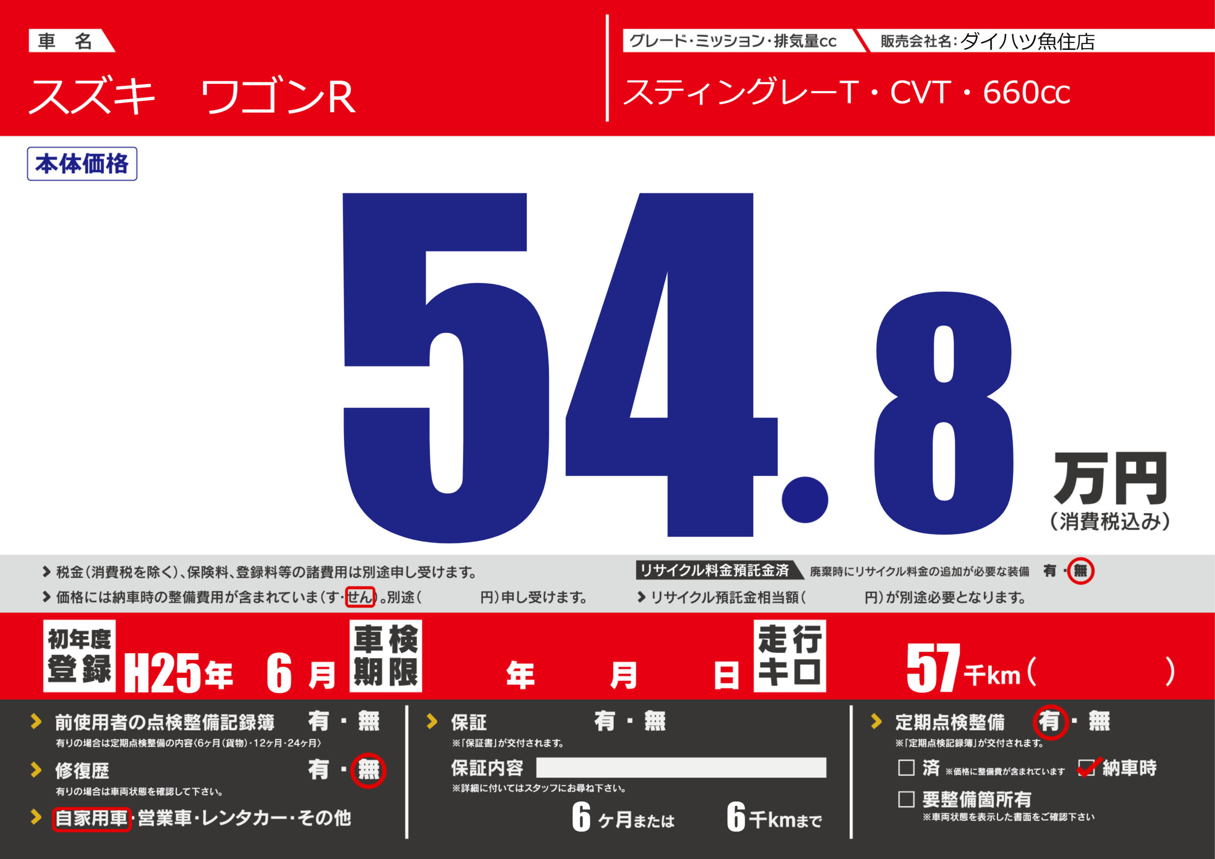 | 走行キロ | 5.7万km | 初年度登録 | H25年6月 |