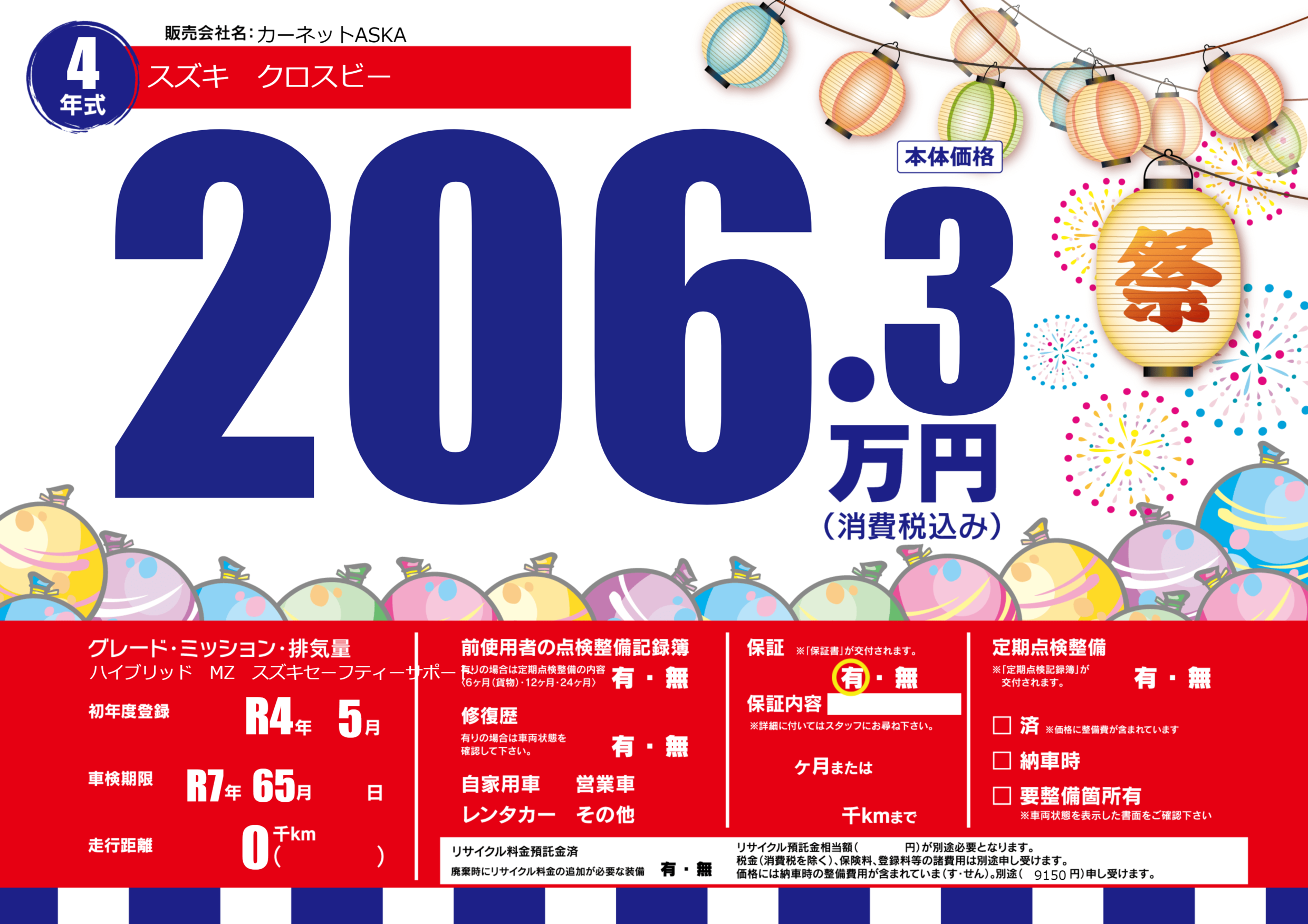 | 走行キロ | - | 初年度登録 | R4年5月 |