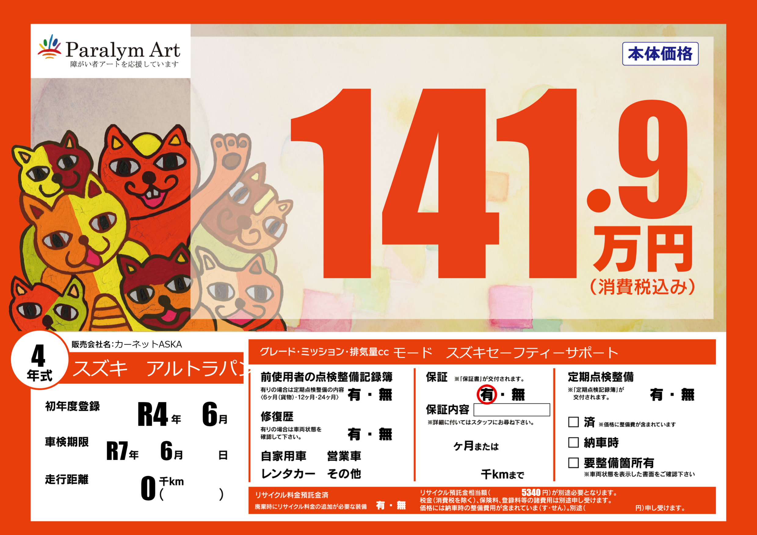 | 走行キロ | - | 初年度登録 | R4年6月 |
