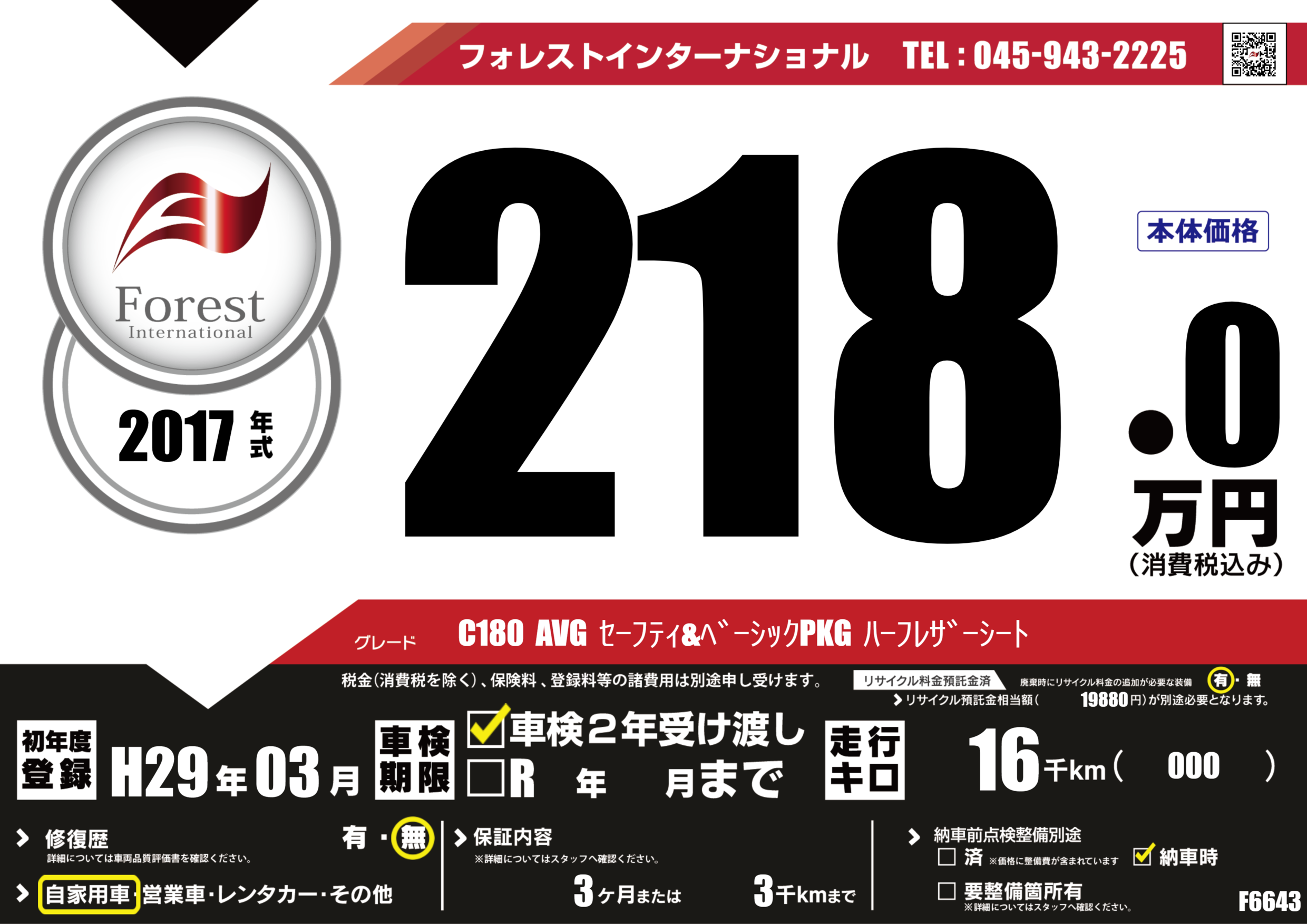 | 走行キロ | 1.6万km | 初年度登録 | H29年03月 |