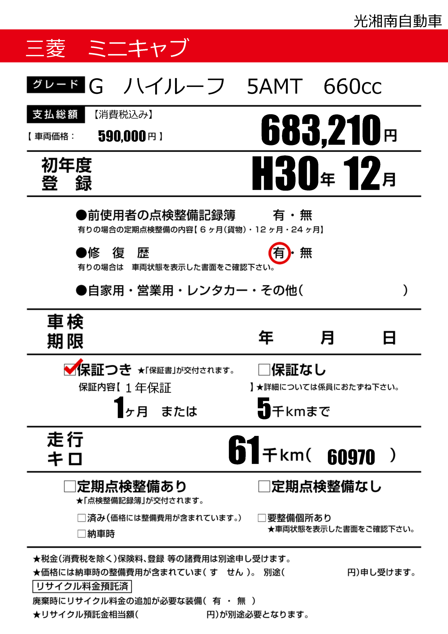 保証付き 保証内容(1年保証) 1ヶ月または(5)千kmまで |