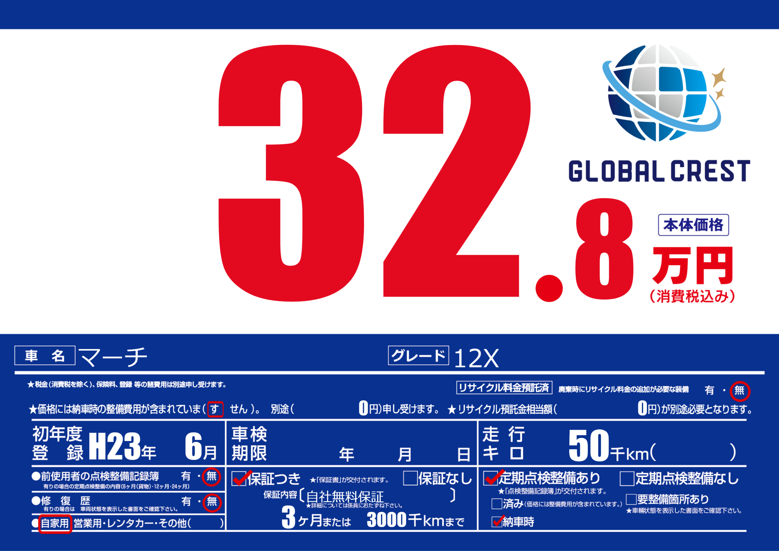 | 車名 | マーチ | グレード ミッション 排気量 |