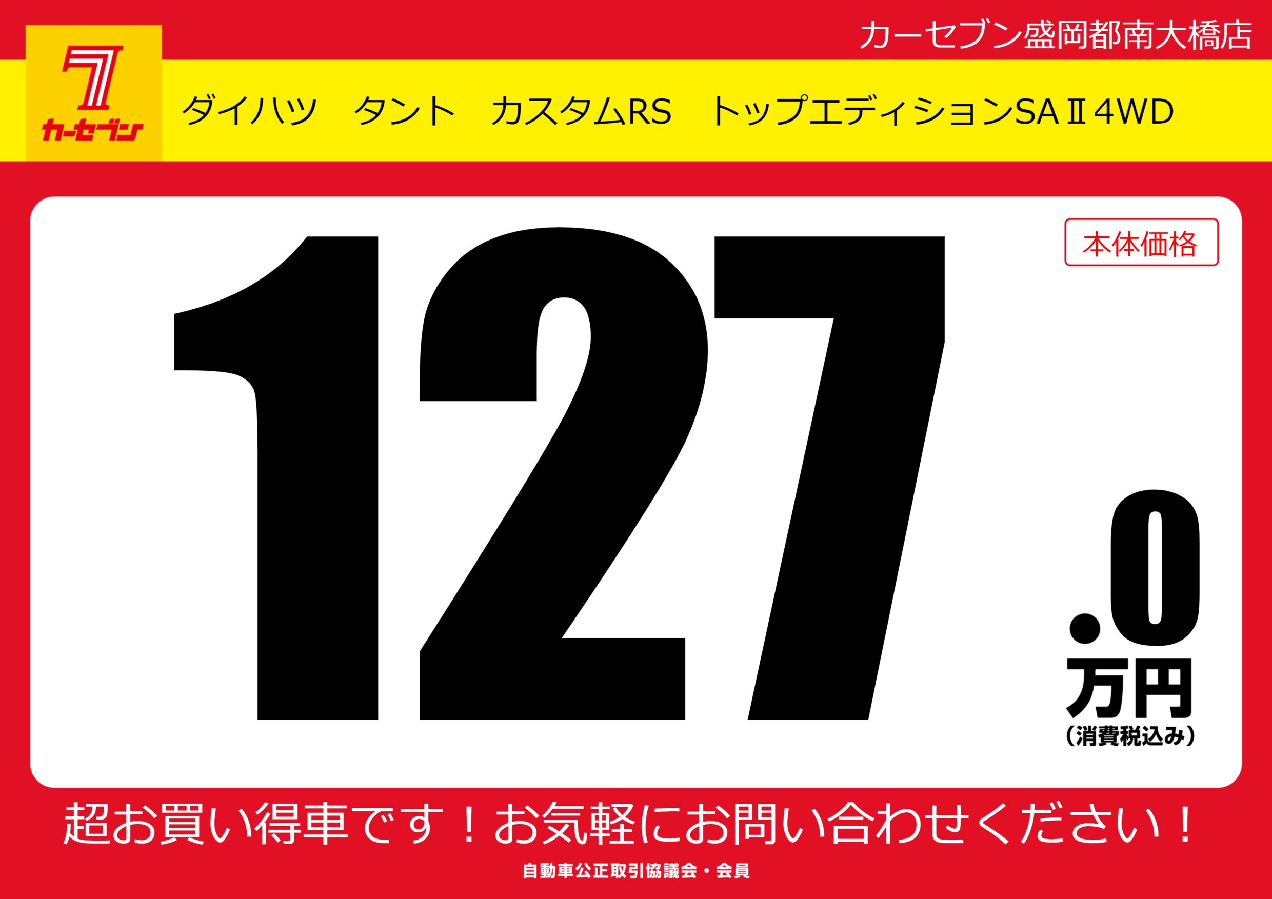 | 車名 | ダイハツ タント カスタムRS トップエディションSAⅡ4WD | グレード ミッション 排気量 |
