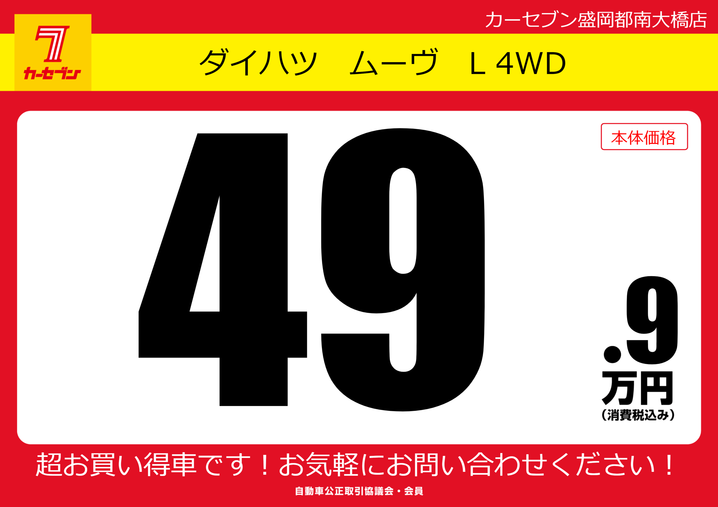 | 車名 | ダイハツ ムーヴ L 4WD | グレード ミッション 排気量 |