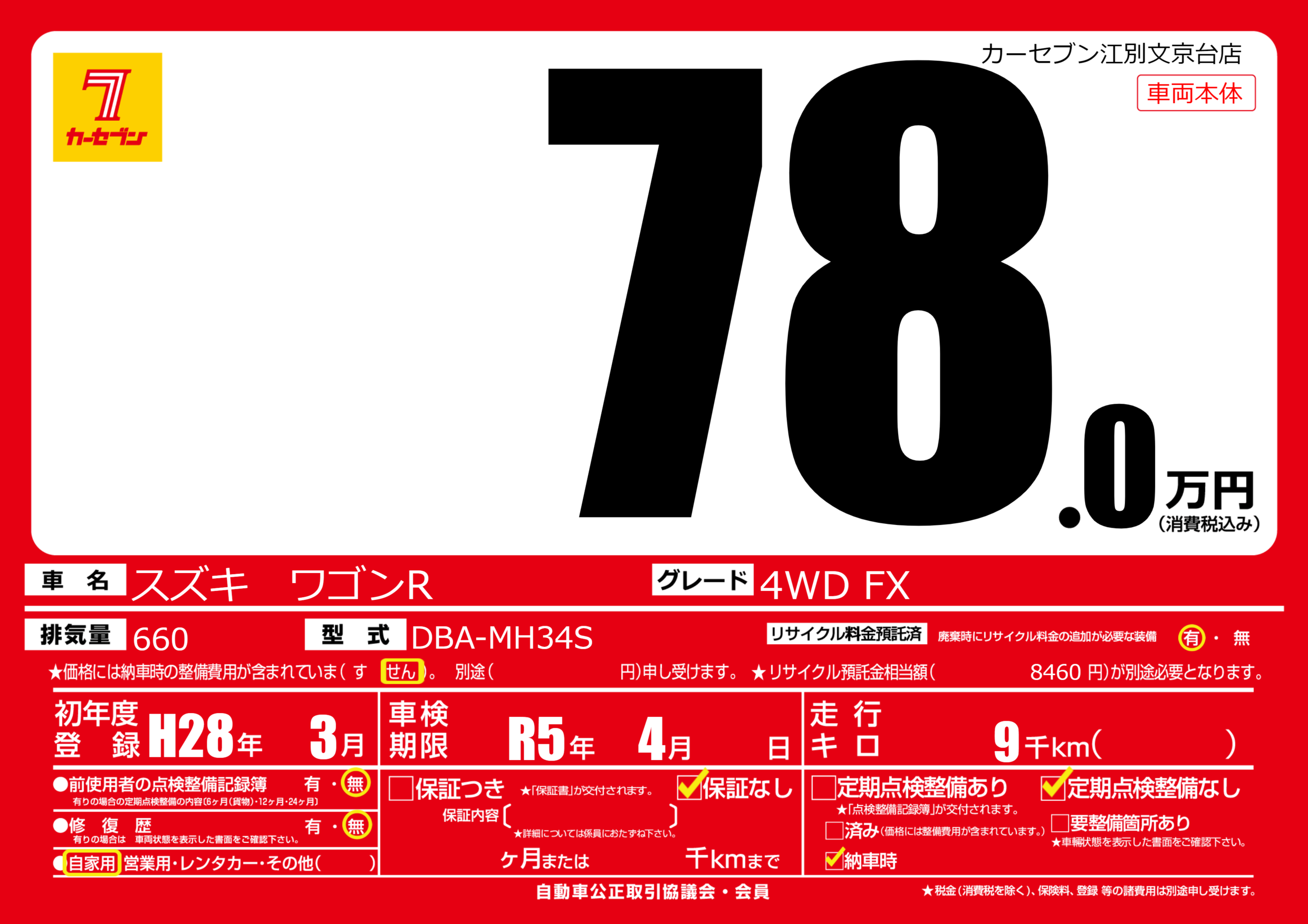 | 車名 | スズキ ワゴンR | グレード ミッション 排気量 |