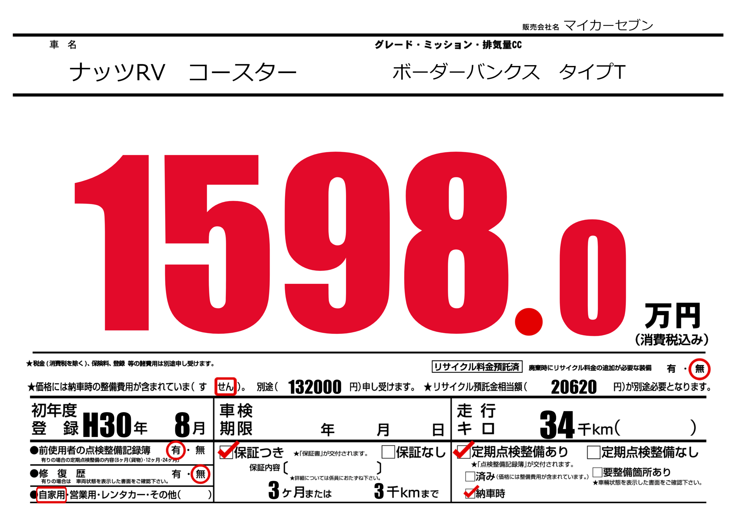 保証付き 保証内容(---) 3ヶ月または(3)千kmまで |