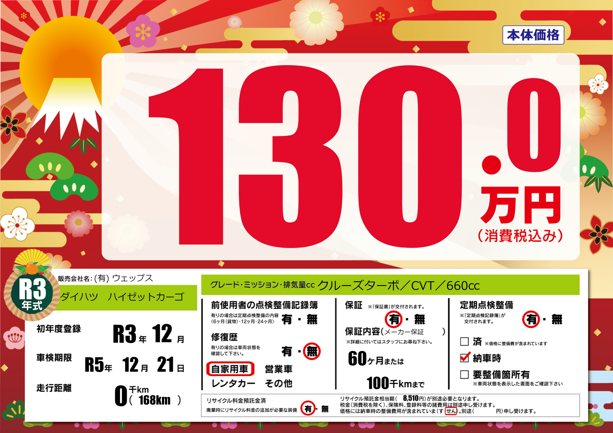 | 車検制限 | R5年 12月 21日 | ||