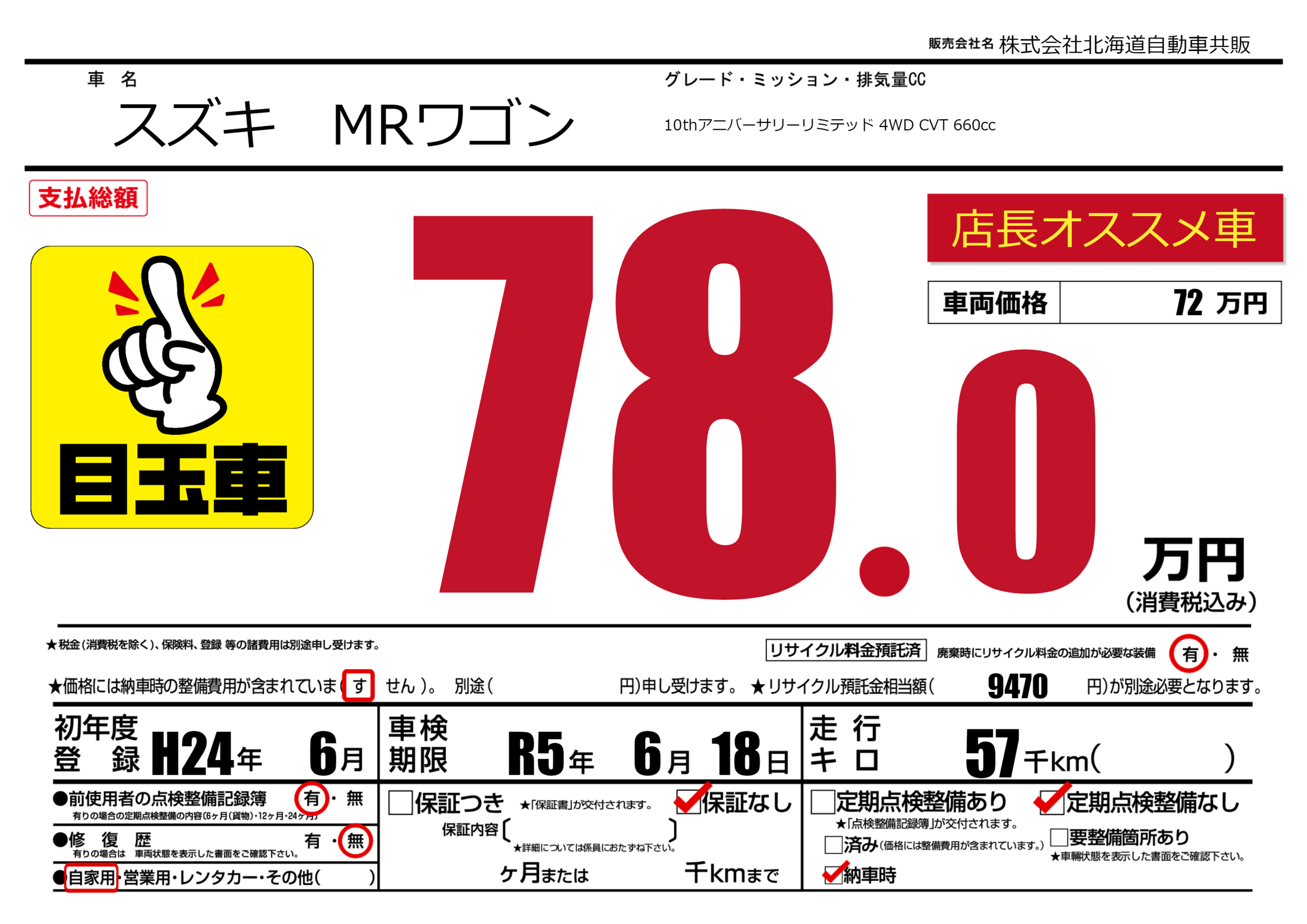 | 車検制限 | R5年 6月 18日 | ||