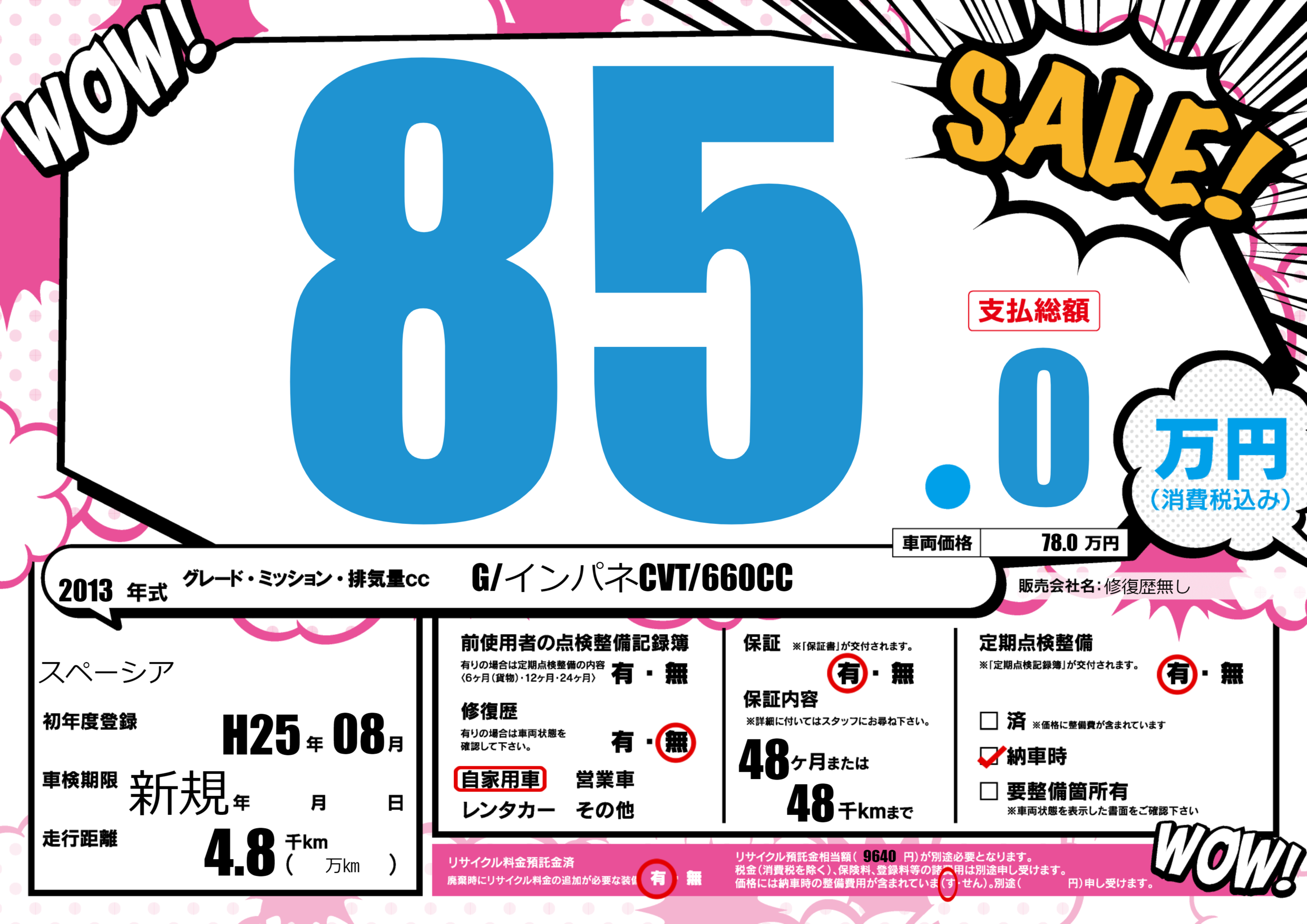 保証付き 保証内容(---) 48ヶ月または(48)千kmまで |