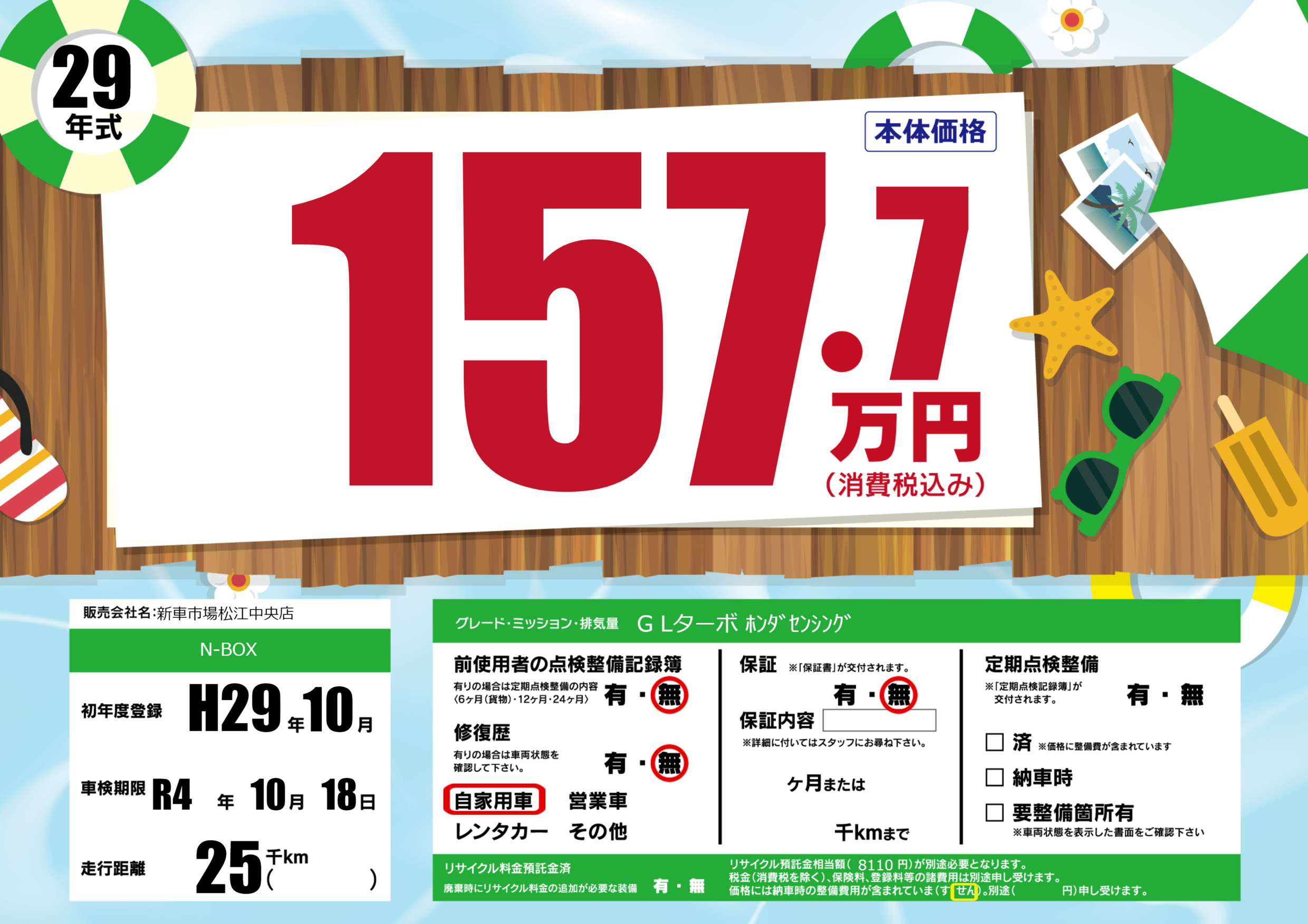 | 走行キロ | 2.5万km | 初年度登録 | H29年10月 |