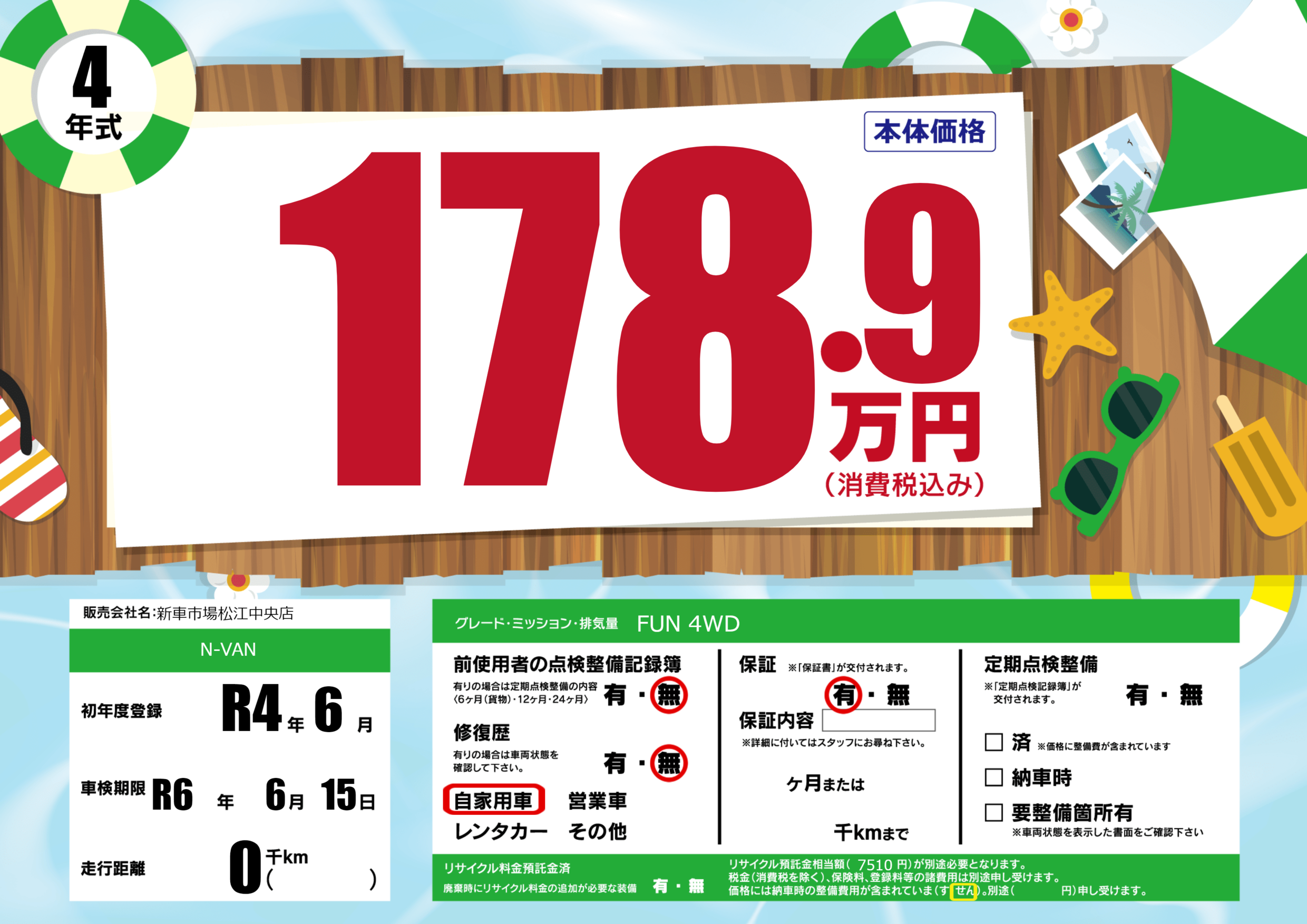 なし | 車検制限 | R6年6月15月 |