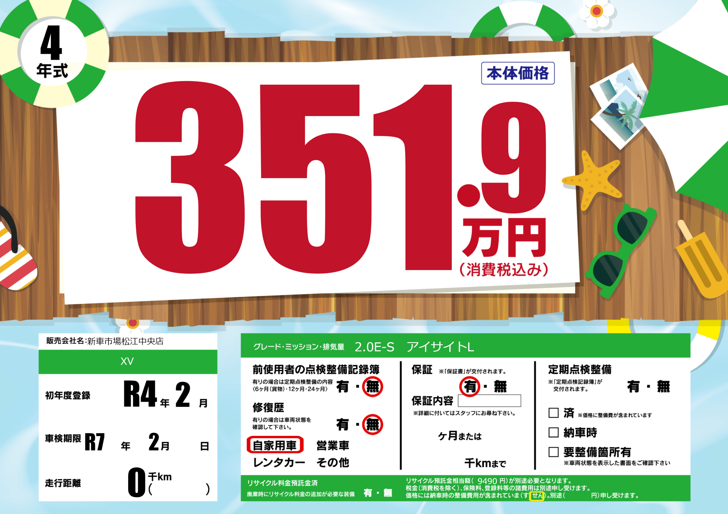 | 走行キロ | - | 初年度登録 | R4年2月 |