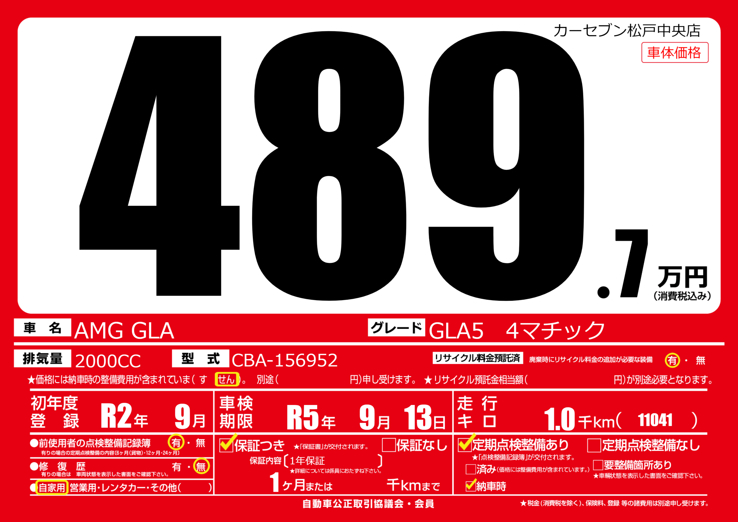 | 車名 | AMG GLA | グレード ミッション 排気量 |