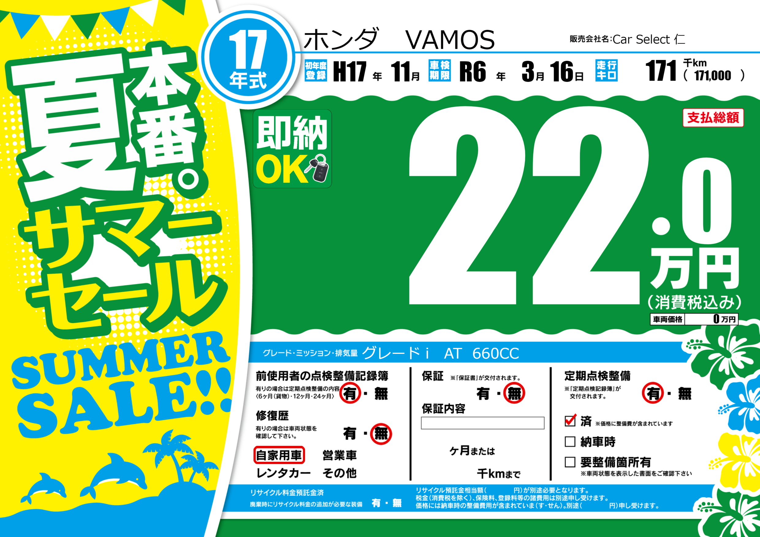 | 車名 | ホンダ VAMOS(売約済) | グレード ミッション 排気量 |
