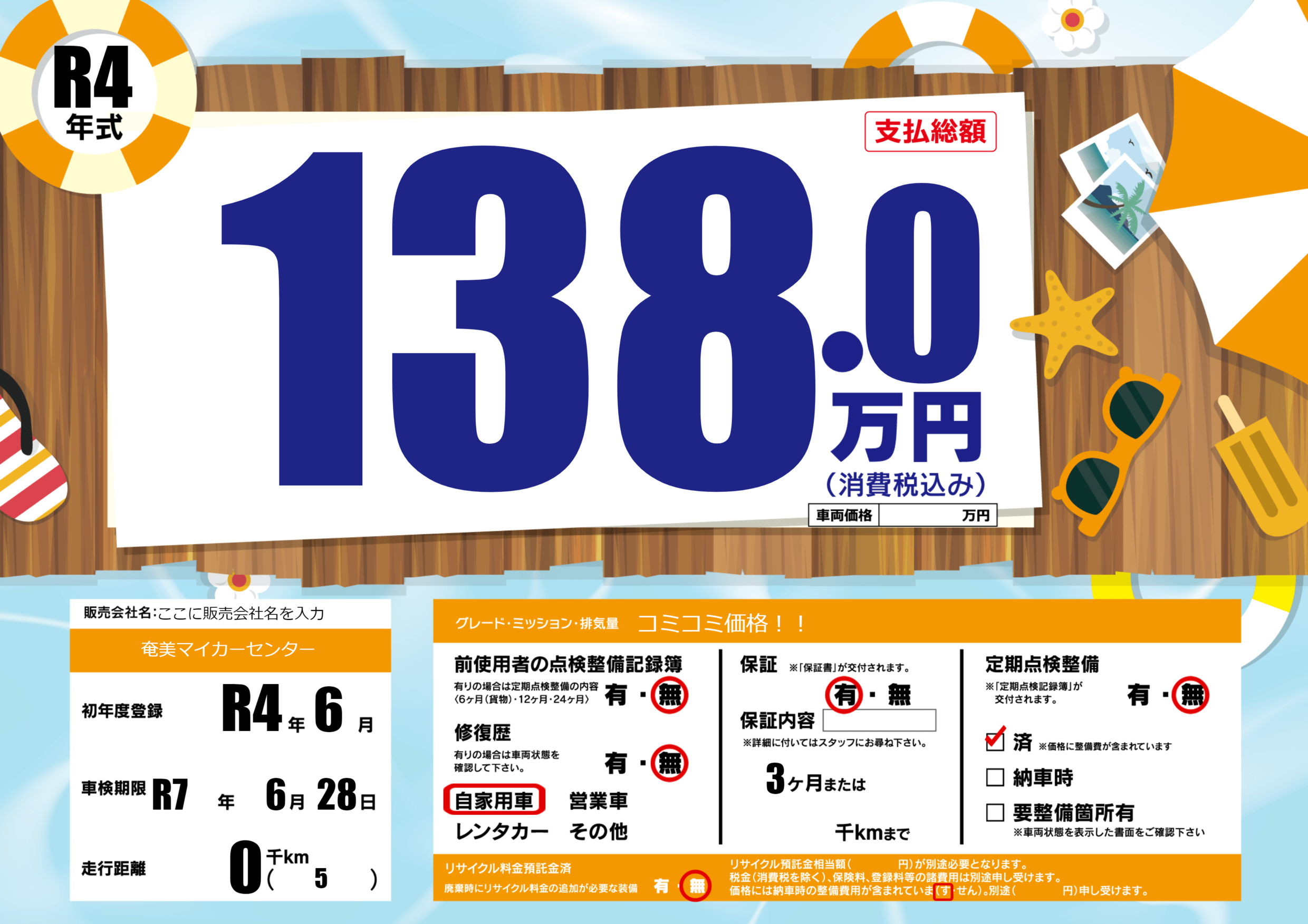 | 定期点検整備 | 定期点検整備なし 定期点検整備済み | ||