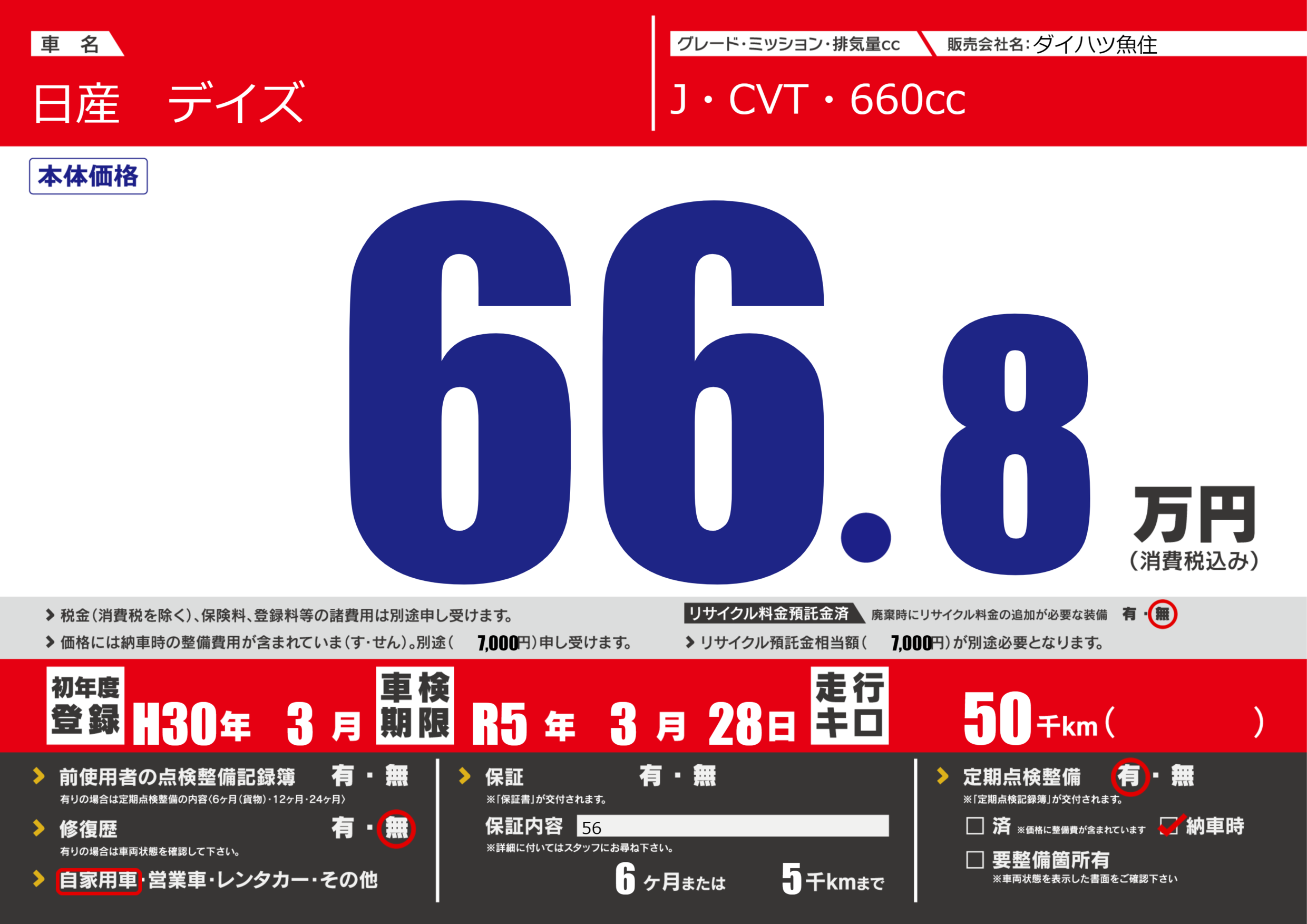 車検制限 | R5年3月28月 |